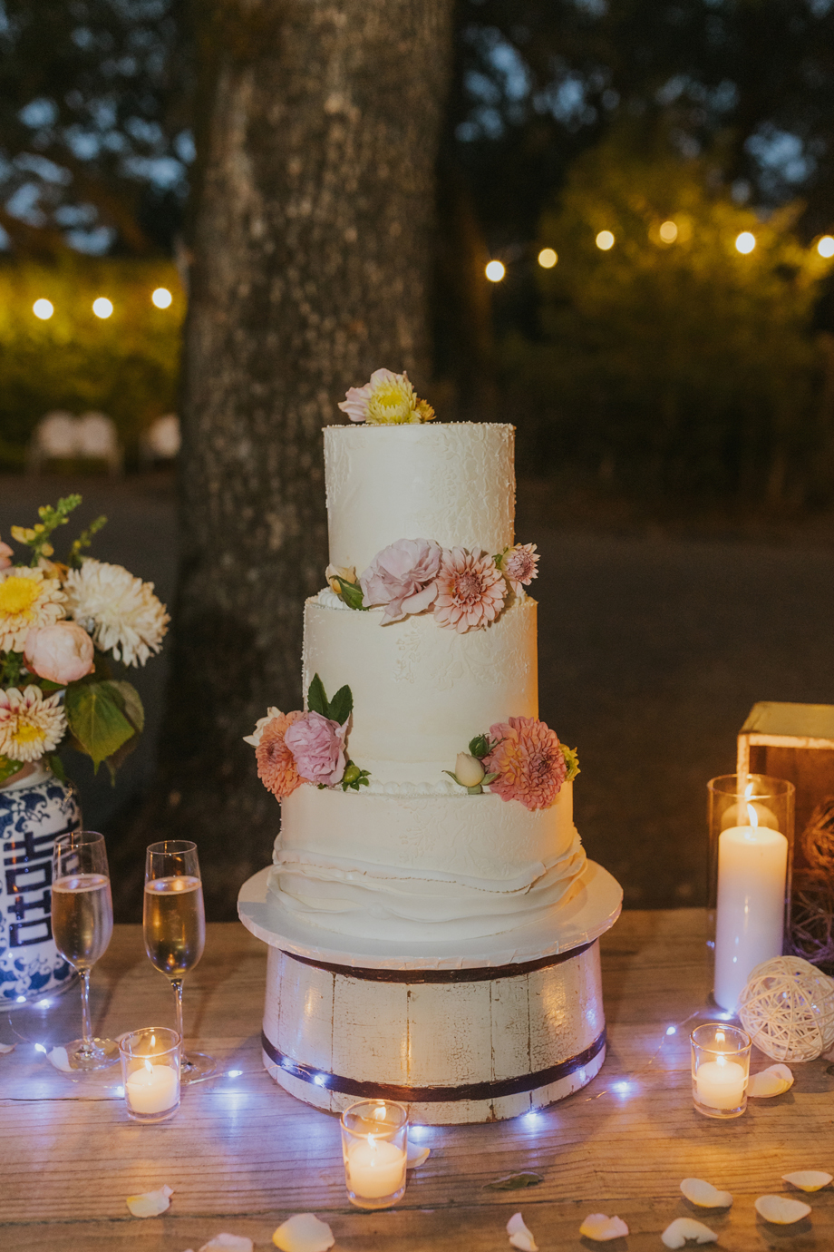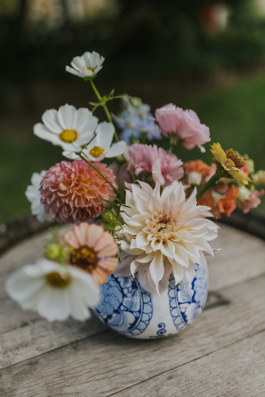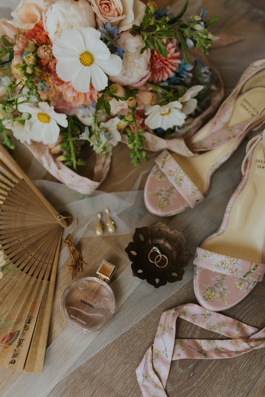 (2) Our florist, Auna at Beijaflor Botanicals, went above and beyond to respond to every request I had, including tracking down culturally symbolic flowers (e.g., peonies) and hard-to-find Chinoiserie vases. We were blown away by every arrangement, ranging from the simple bud vases on each table to the stunning floral installation she created for our ceremony tree.