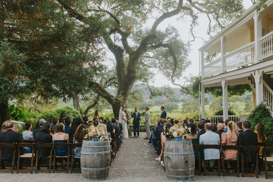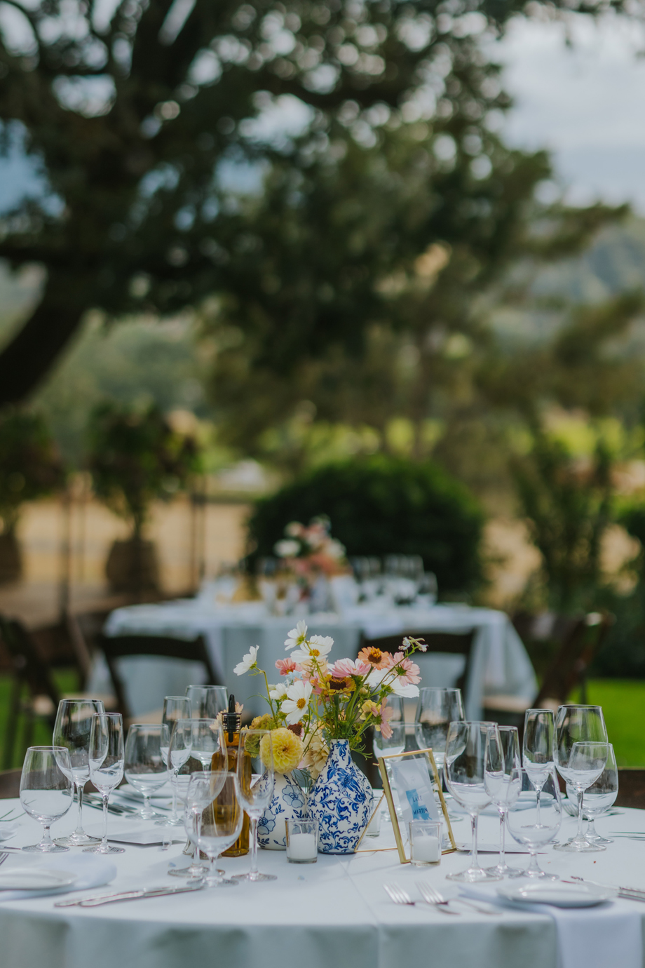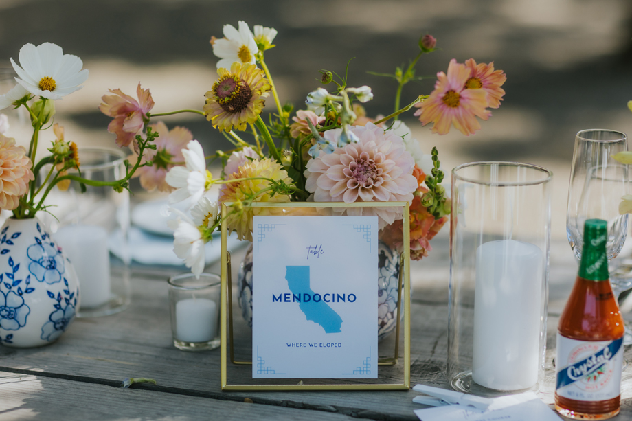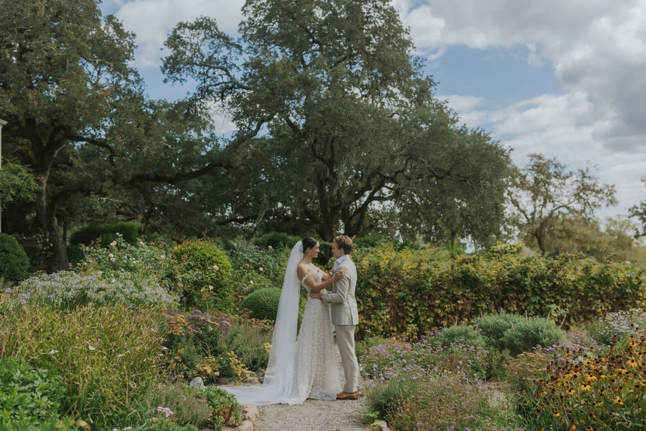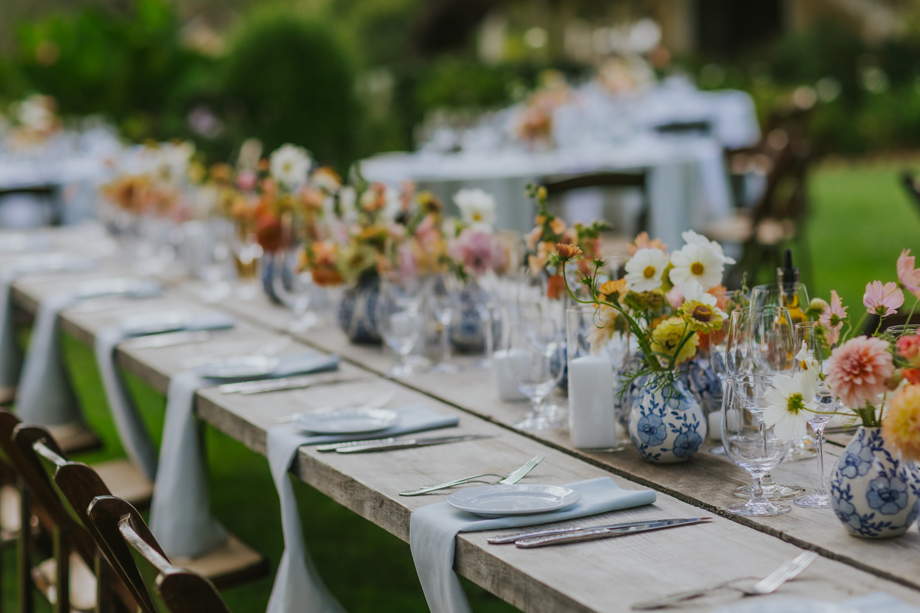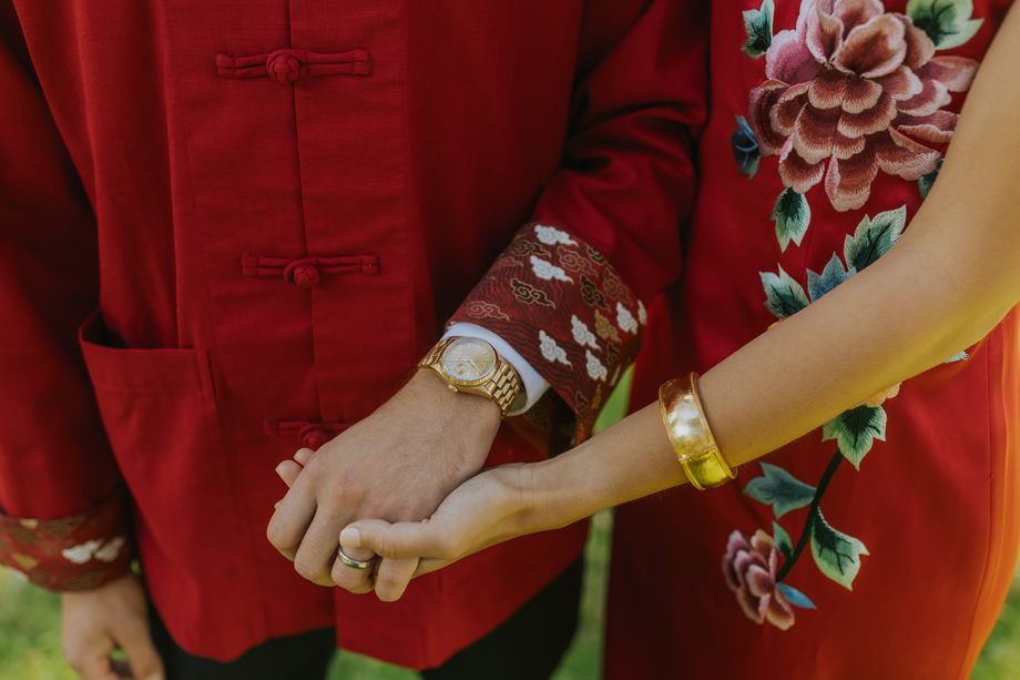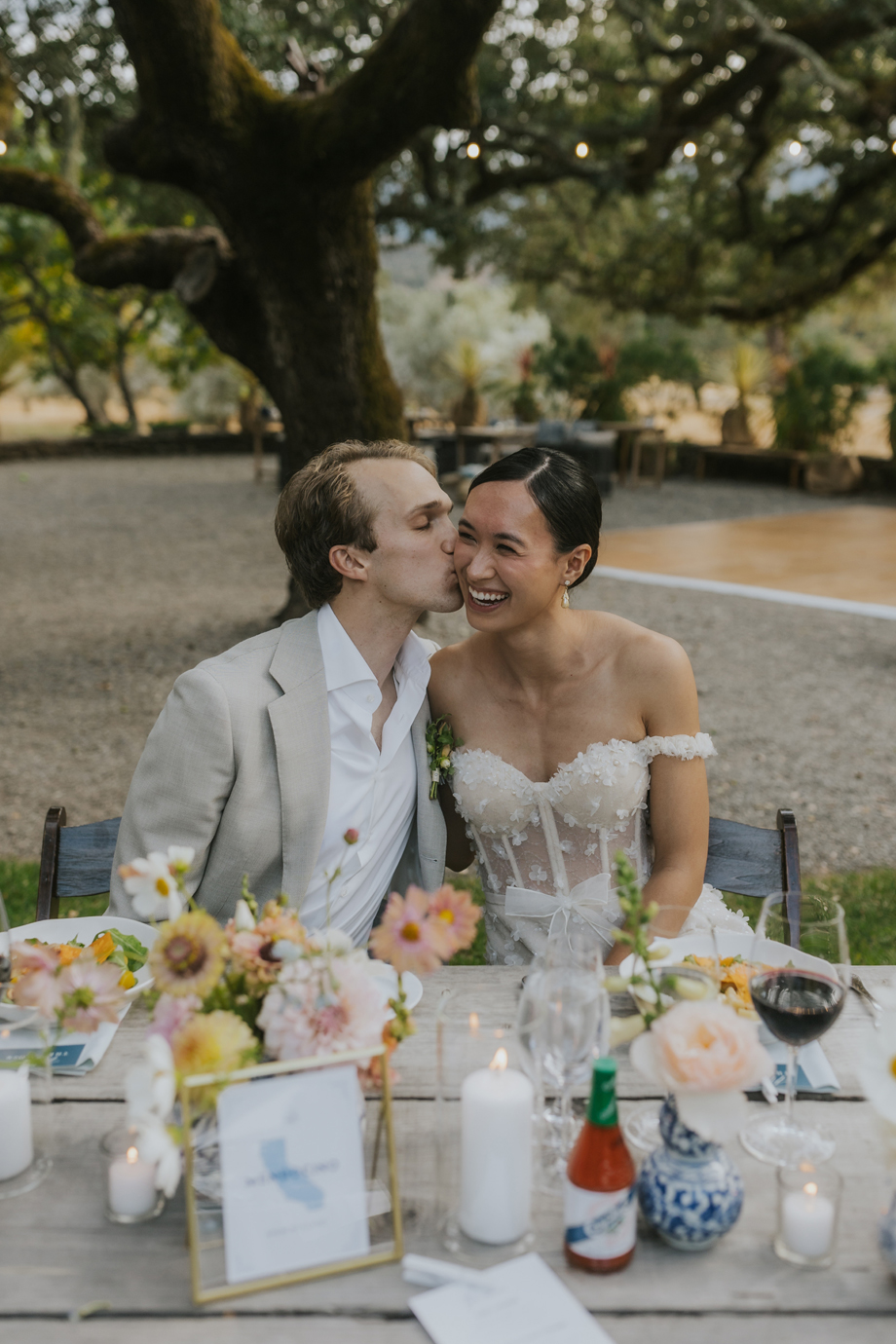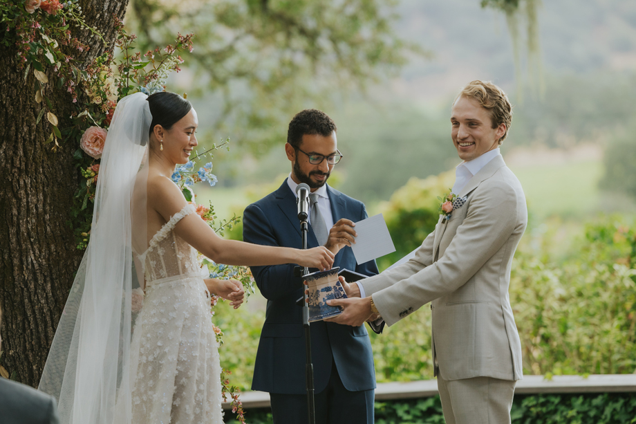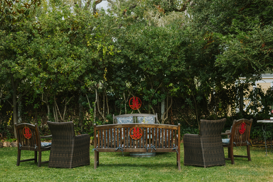 We actually eloped in Mendocino in December 2022, so our September 2023 “wedding” was really a wedding celebration to share with our friends and family. We didn’t have clear expectations, but we knew we wanted a weekend of celebration that felt reflective of us and allowed for lots of time with friends and family. This meant a few things, including having the event outside since we both love the outdoors; choosing a venue with on-site accommodations so some close friends and family could stay with us for the entire weekend; and bringing in elements of both of our cultures, which strongly influenced our Cajun/Taiwanese menu, our Chinoiserie-style wedding decor, and our inclusion of a tea ceremony.