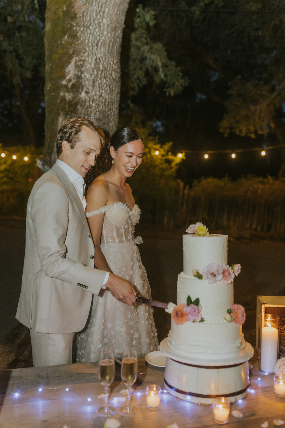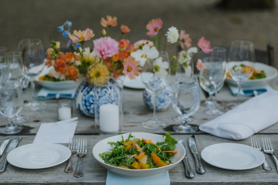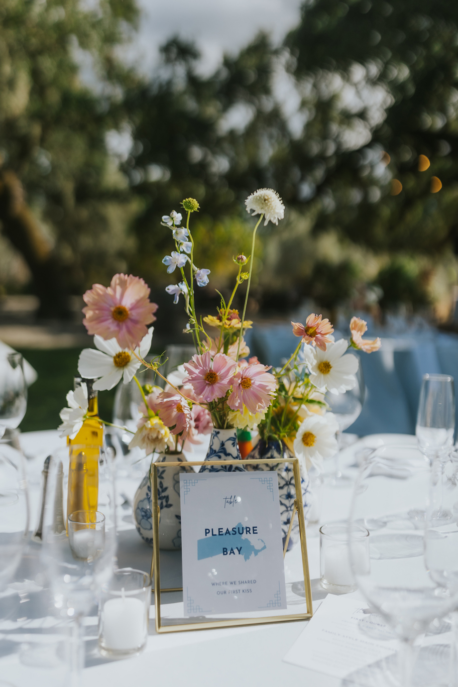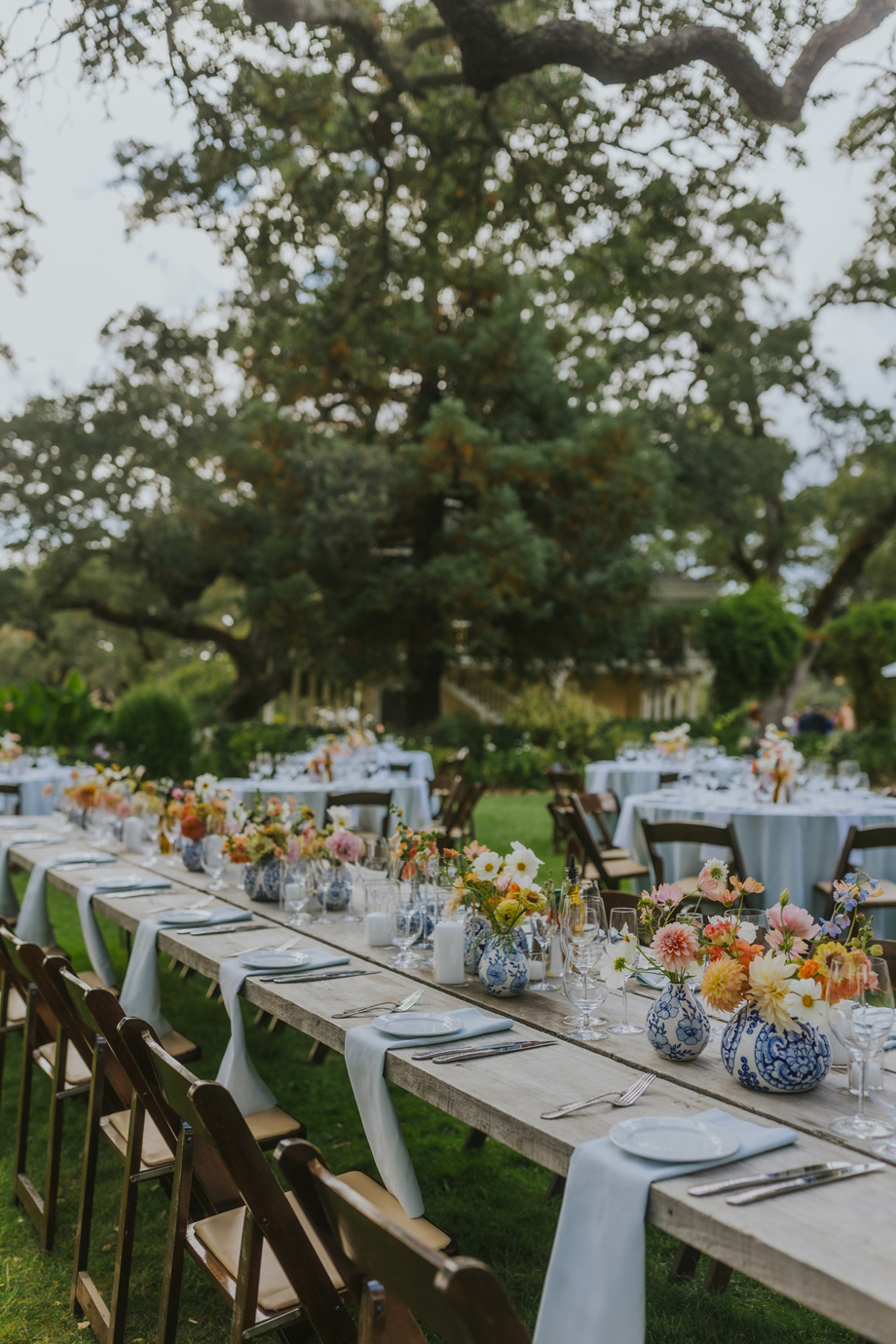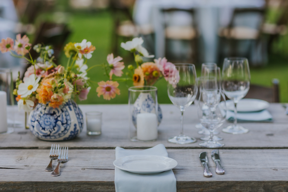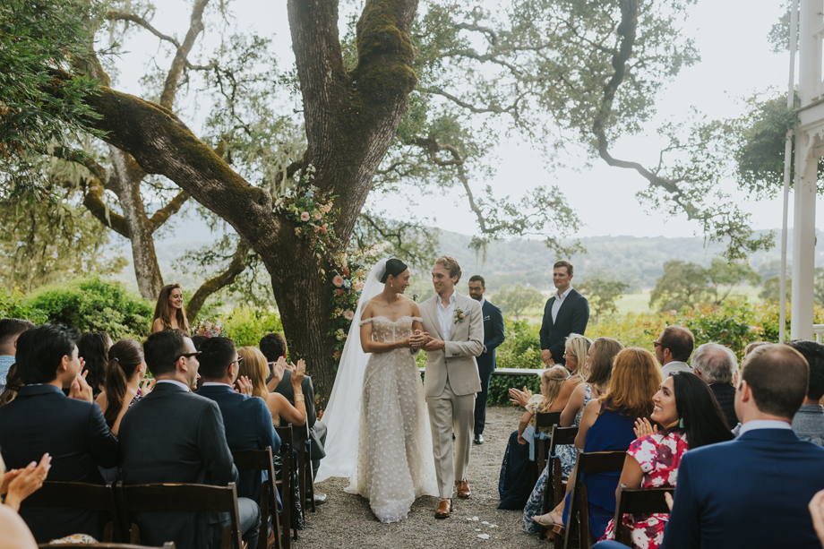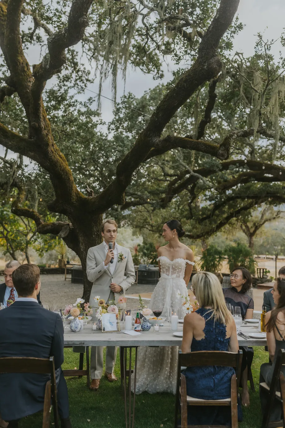 We actually eloped in Mendocino in December 2022, so our September 2023 “wedding” was really a wedding celebration to share with our friends and family. We didn’t have clear expectations, but we knew we wanted a weekend of celebration that felt reflective of us and allowed for lots of time with friends and family. This meant a few things, including having the event outside since we both love the outdoors; choosing a venue with on-site accommodations so some close friends and family could stay with us for the entire weekend; and bringing in elements of both of our cultures, which strongly influenced our Cajun/Taiwanese menu, our Chinoiserie-style wedding decor, and our inclusion of a tea ceremony.