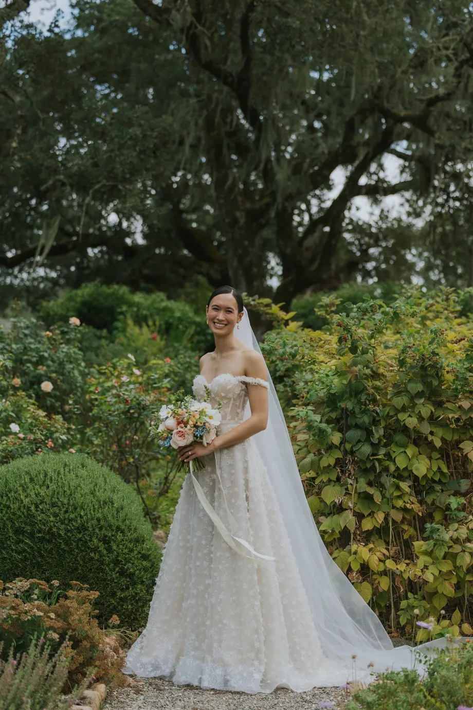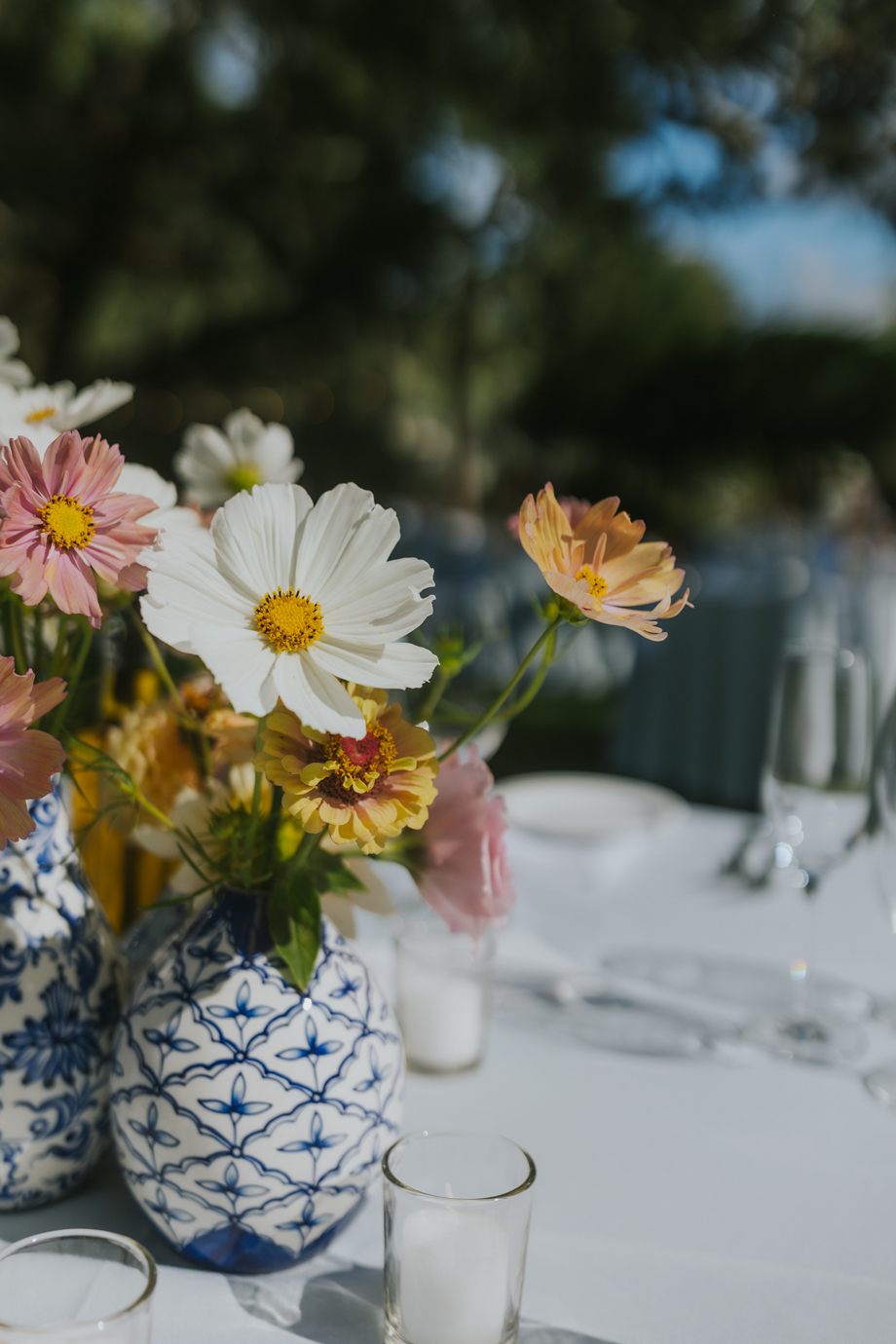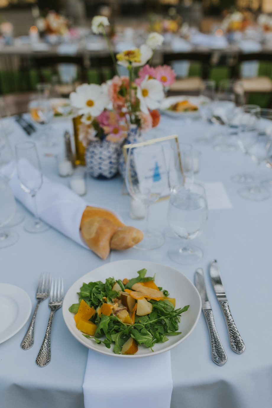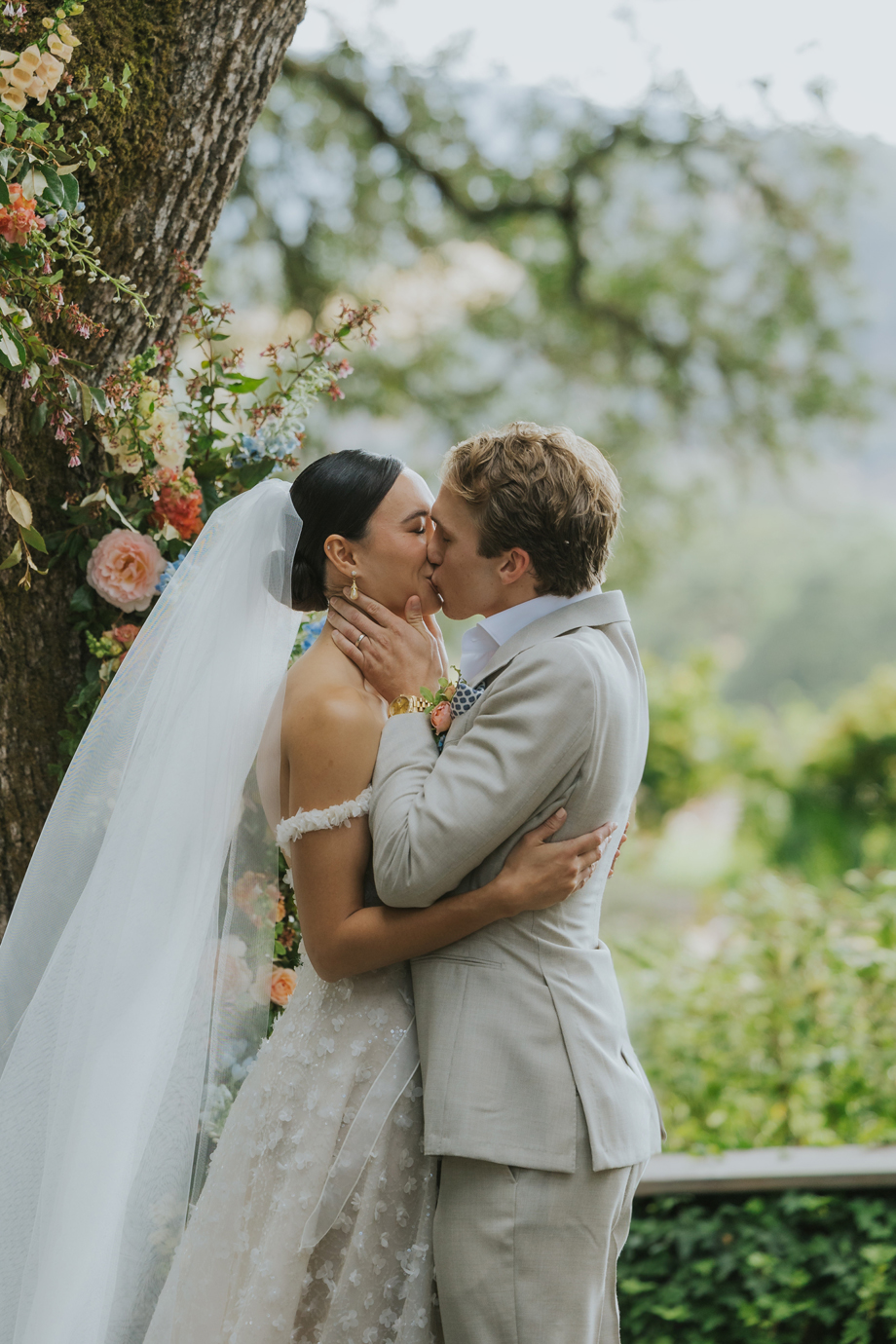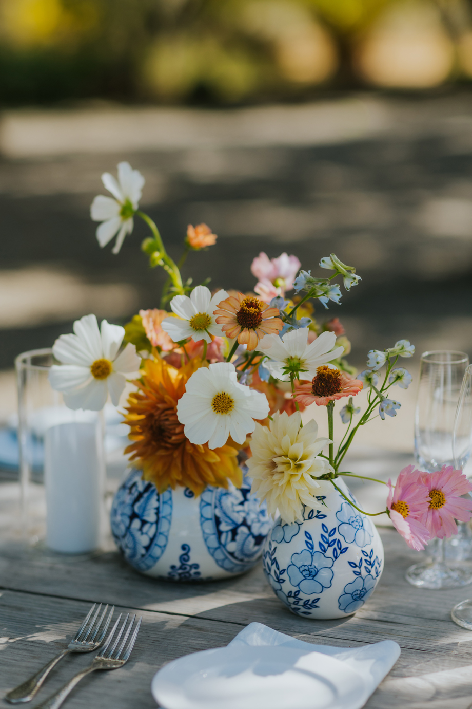 We actually eloped in Mendocino in December 2022, so our September 2023 “wedding” was really a wedding celebration to share with our friends and family. We didn’t have clear expectations, but we knew we wanted a weekend of celebration that felt reflective of us and allowed for lots of time with friends and family. This meant a few things, including having the event outside since we both love the outdoors; choosing a venue with on-site accommodations so some close friends and family could stay with us for the entire weekend; and bringing in elements of both of our cultures, which strongly influenced our Cajun/Taiwanese menu, our Chinoiserie-style wedding decor, and our inclusion of a tea ceremony.