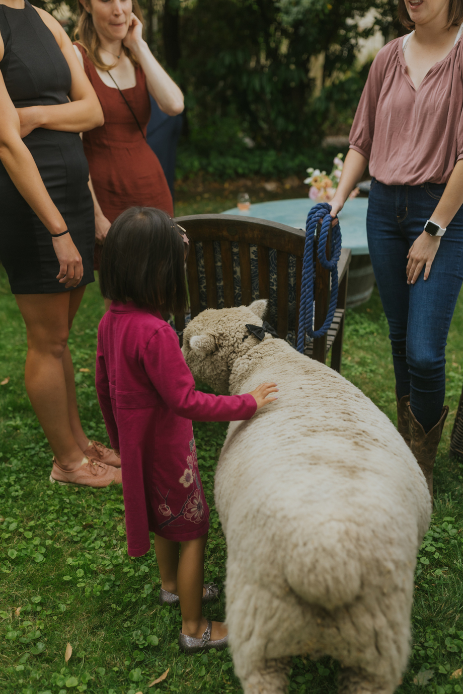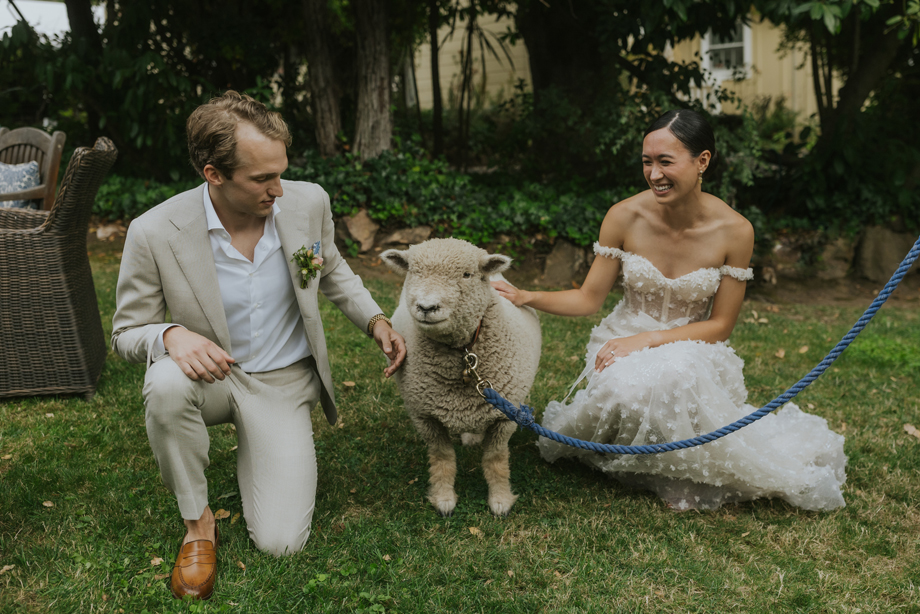 The crew at Beltane Ranch kindly brought Wally, their adorable Southdown Babydoll sheep, out to mix and mingle with our guests during cocktail hour. He was even clad in a bowtie. We had initially thought that Wally would be a fun addition for the kids at our wedding, but he ended up being a big hit with our adult guests too.