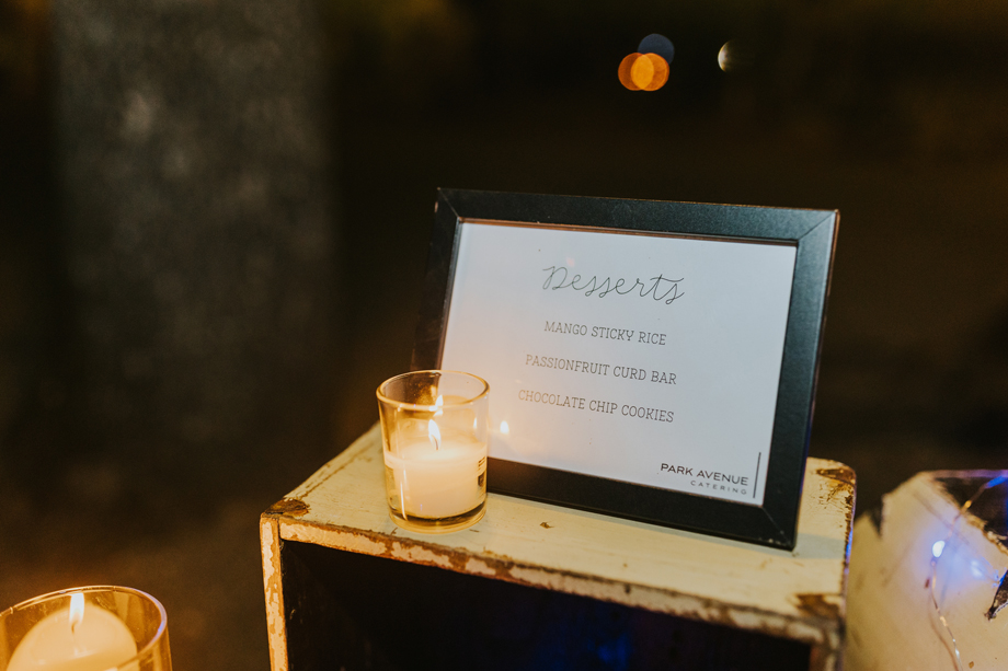 (1) We worked closely with Caitlin at Park Avenue Catering to create a wedding menu that paid homage to both of our cultures, and they did a beautiful job incorporating Taiwanese and Cajun food into our menu. Our guests loved that they had items like scallion pancakes during cocktail hour and transitioned into items like shrimp and grits for dinner.