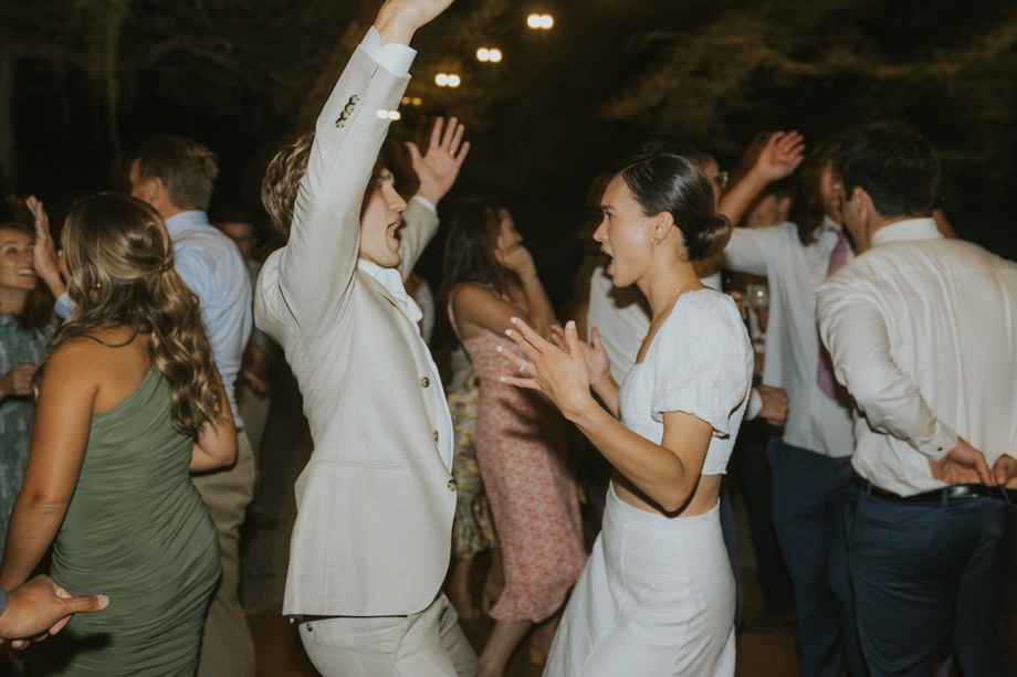 Neither of us are big dancers, but we took a couples’ dance lesson and had a simple choreography to “Can’t Do Much” by Waxahatchee as our first dance. It was so much fun! We got some great photos of our guests’ reactions when Joe lifted Alethea up high for the finale