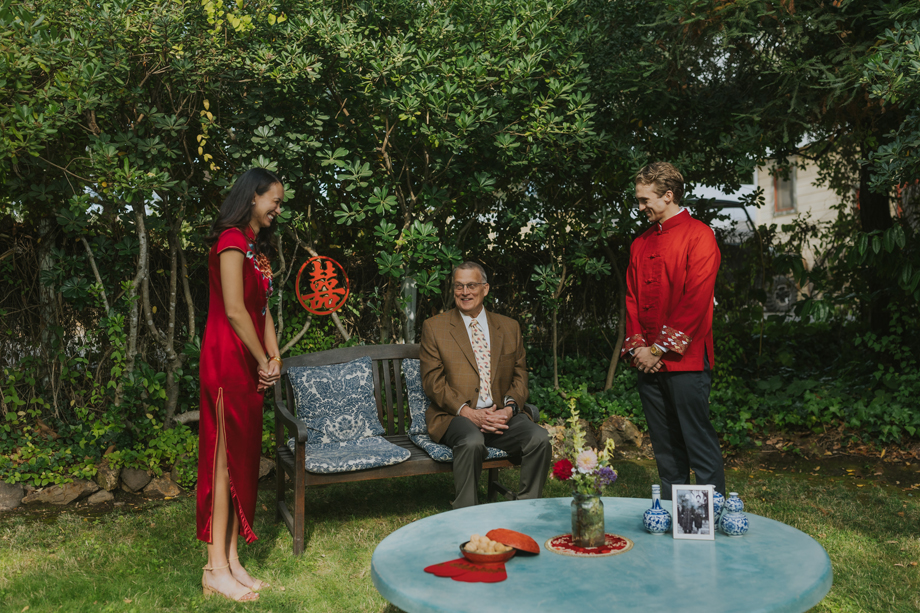 We had a tea ceremony, which is a special tradition in Taiwanese (and other East Asian) weddings where the newlyweds serve tea to their elders as a sign of respect and gratitude for their love and support. The bride’s parents also had a tea ceremony when they got married, so it was really meaningful both to us and to Alethea’s family to include this as part of our weekend. It was also fun to share more about Alethea’s culture with Joe’s family. Aside from the tea ceremony, there were also nods to our Taiwanese and Cajun cultures in the menu, and our wedding decor was Chinoiserie-inspired.