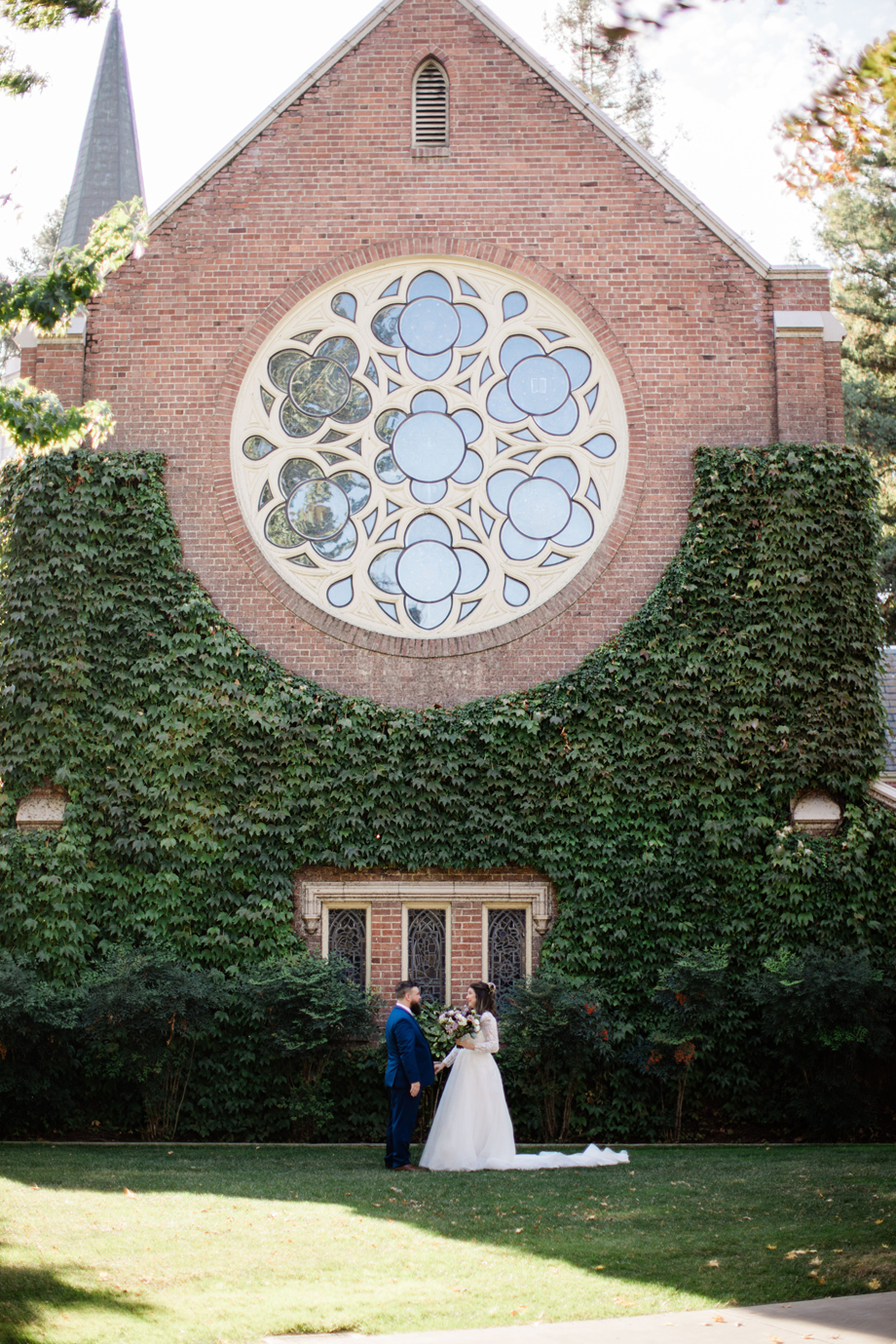 Our ceremony was a combination of traditional and new that reflected us as a couple. It was held at Morris Chapel at the University of the Pacific. We are both alumni of the Conservatory of Music at UOP and we met on campus, so it was very special for us to get married there. Our ceremony was officiated by our friend and mentor, Dr. Ruth Brittin, Professor of music and Director of Music Education at UOP. Our grandmas were able to travel from Washington and Wisconsin to be there. We were so lucky to be surrounded by our amazing friends and family.