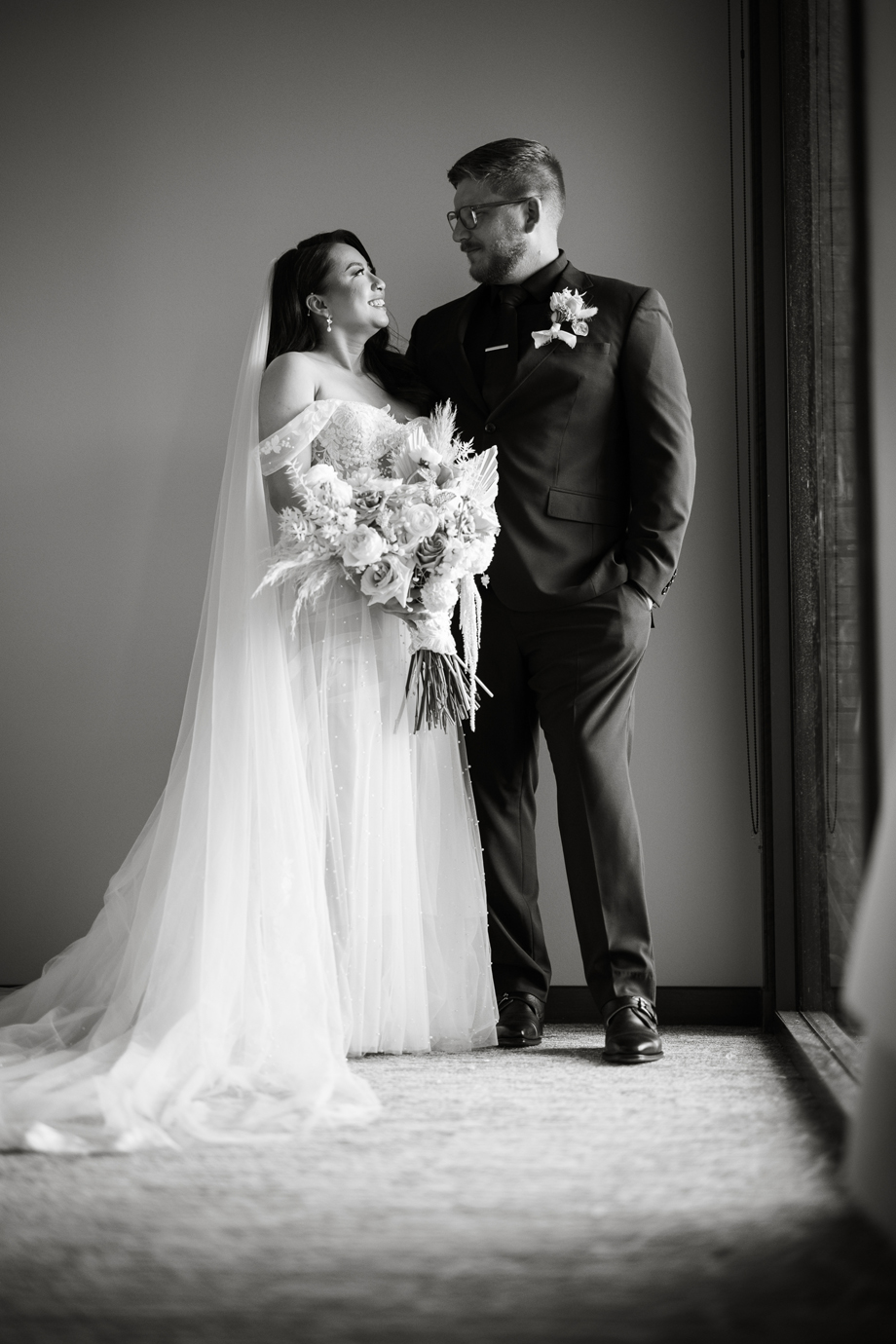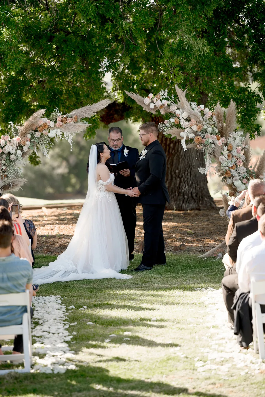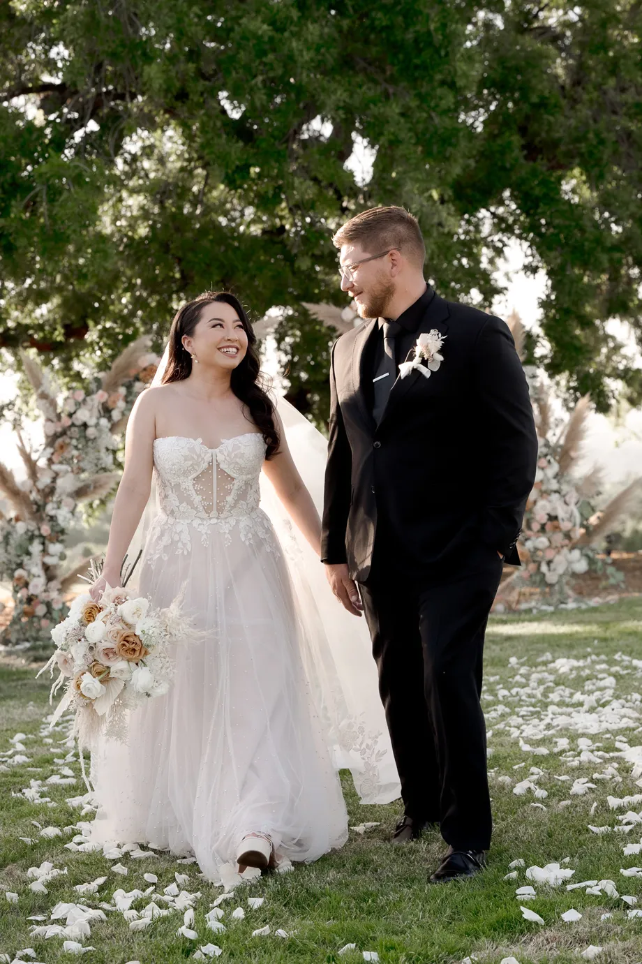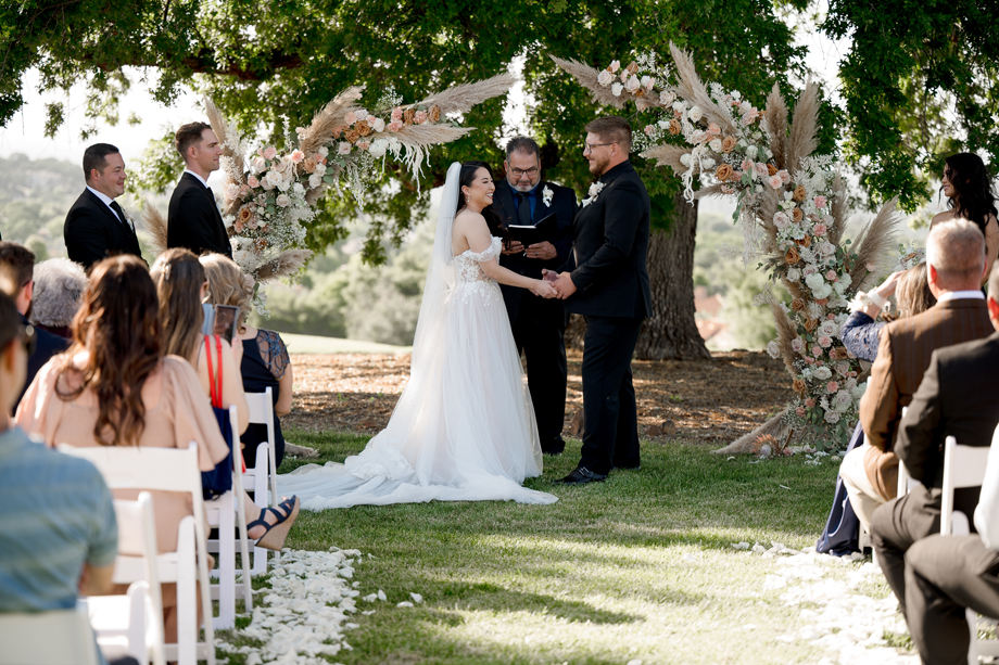It was beyond beautiful. Alex’s mother walked her down the aisle and we had Caleb’s father as our officiant. Alex had a dramatic long walk down aisle to the song of “Can’t Help Falling In Love” cover from Crazy Rich Asians. We timed it perfectly just like the movie scene. Caleb almost teared up, almost. We also wanted to be untraditional. We wanted our families to be able to have the best view of our wedding ceremony and not the back of our heads. We swapped each other’s families to sit at opposite sides. (The groom’s family sat on the bride’s side, vice versa) We even had our bridesmaids and groomsmen stand at opposites so we were able to see them ourselves.