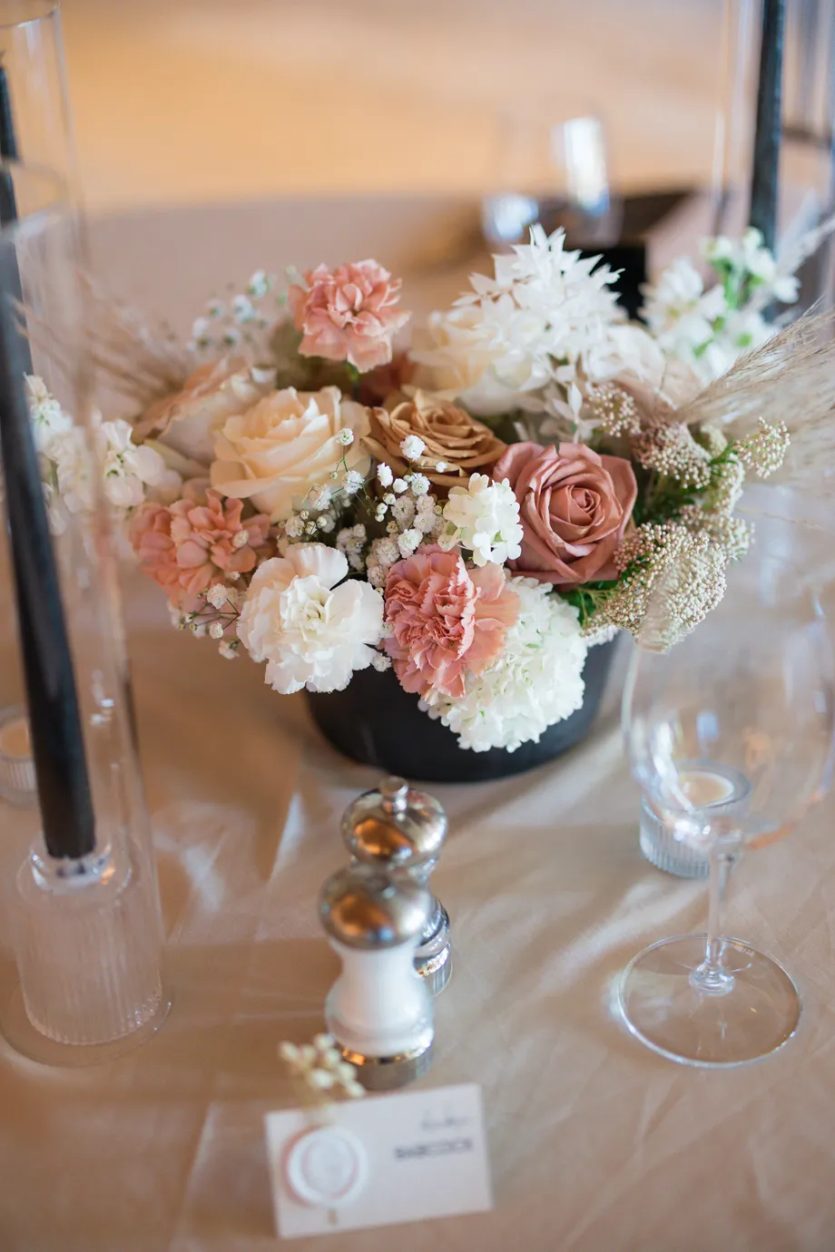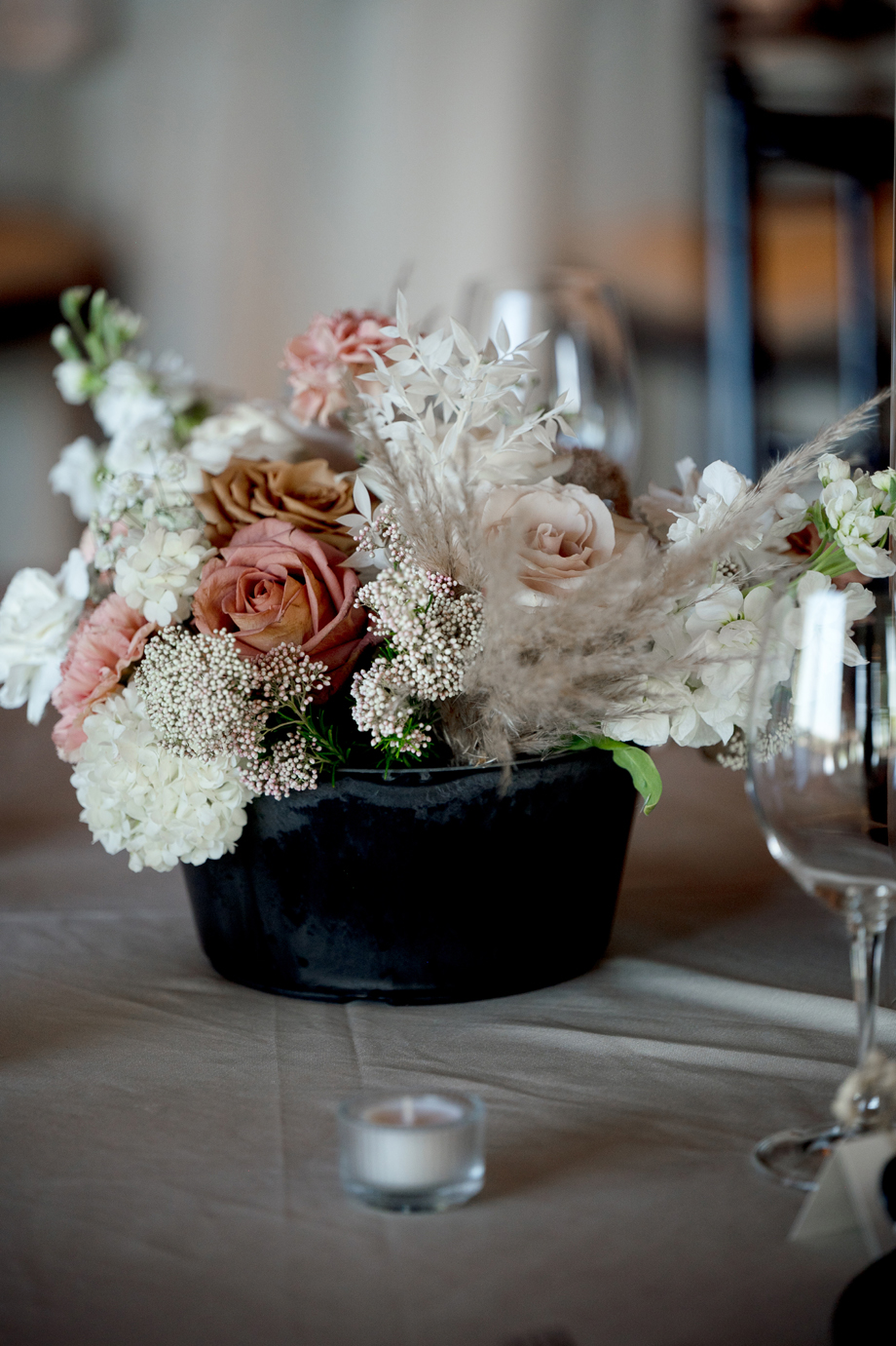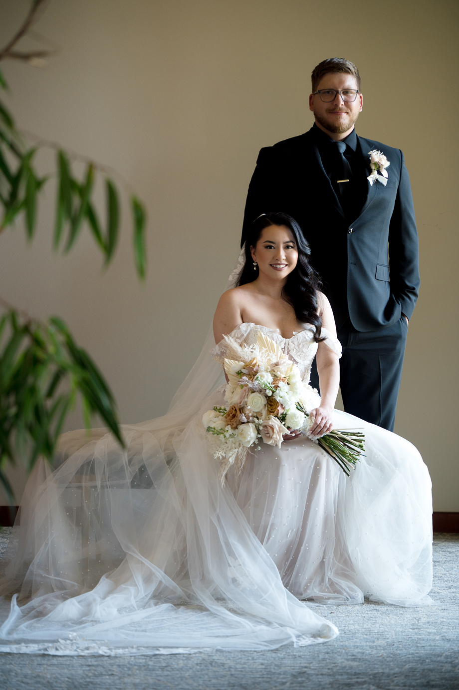 There were so many details that showed our personalities. Our guests enjoyed signature cocktails from Mochi’s Bar which was named after our corgi-husky fur baby. Pictures of us during 10 years together as décor. Music that was instrumental covers of rock and BTS. The florals that represented both of us: modern, bohemian and a little extra.