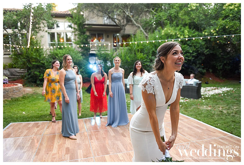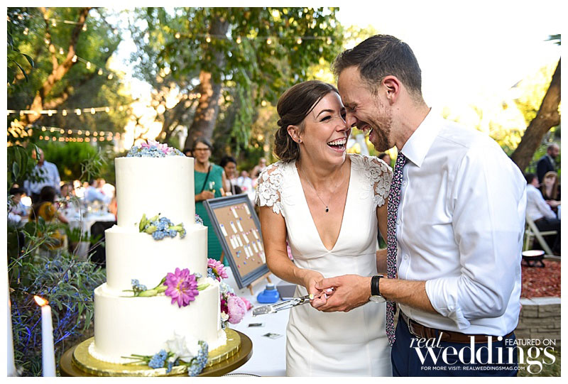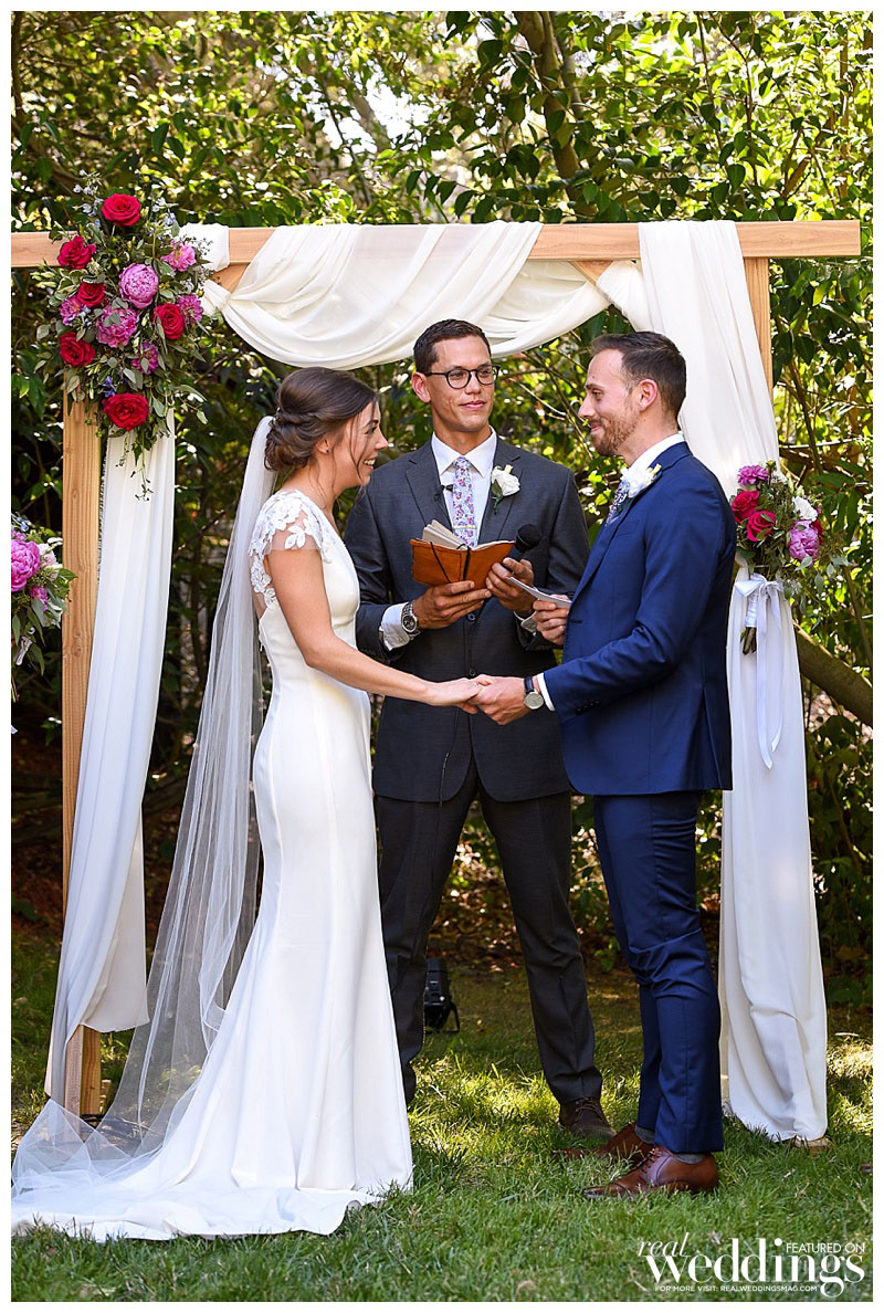 “The highs were definitely when we would finally make a decision on a vendor and ‘lock them in.’ We would have mini celebrations, where we would high-five each other and say stuff like, ‘Woo! Got that DJ!’ in macho voices,” he says. As they looked for a venue, it took some compromising. Alice was leaning toward a destination wedding and Kelly wanted something more personal. They agreed on Tahoe but that still didn’t match their vision. Finally, with a generous offer from Kelly’s mom, they landed on having the ceremony and reception in her backyard.