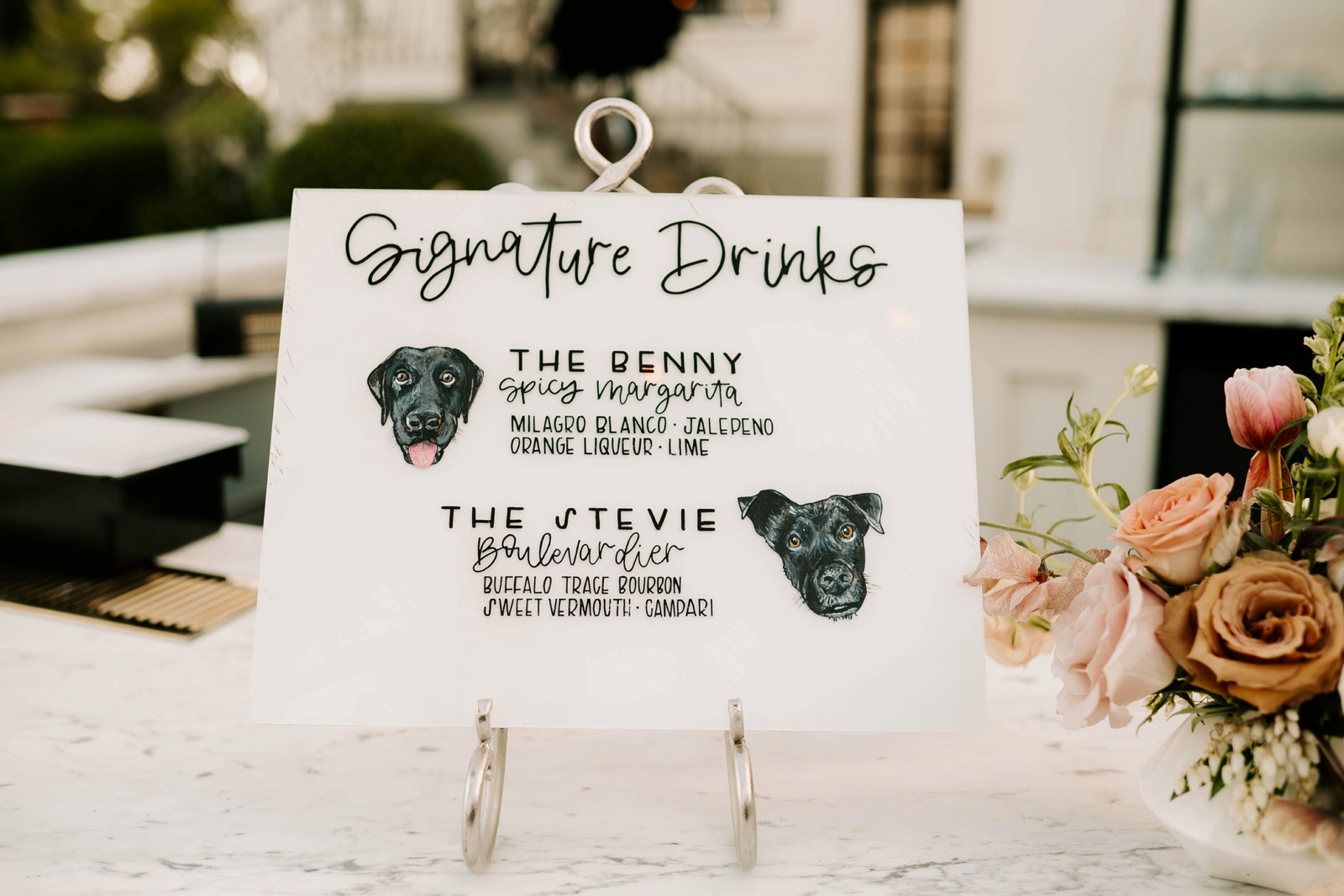 I loved the florals! We also had a custom bar sign made to honor our dogs; each of them got a signature cocktail named after them. I loved having a small way to include them on the day.