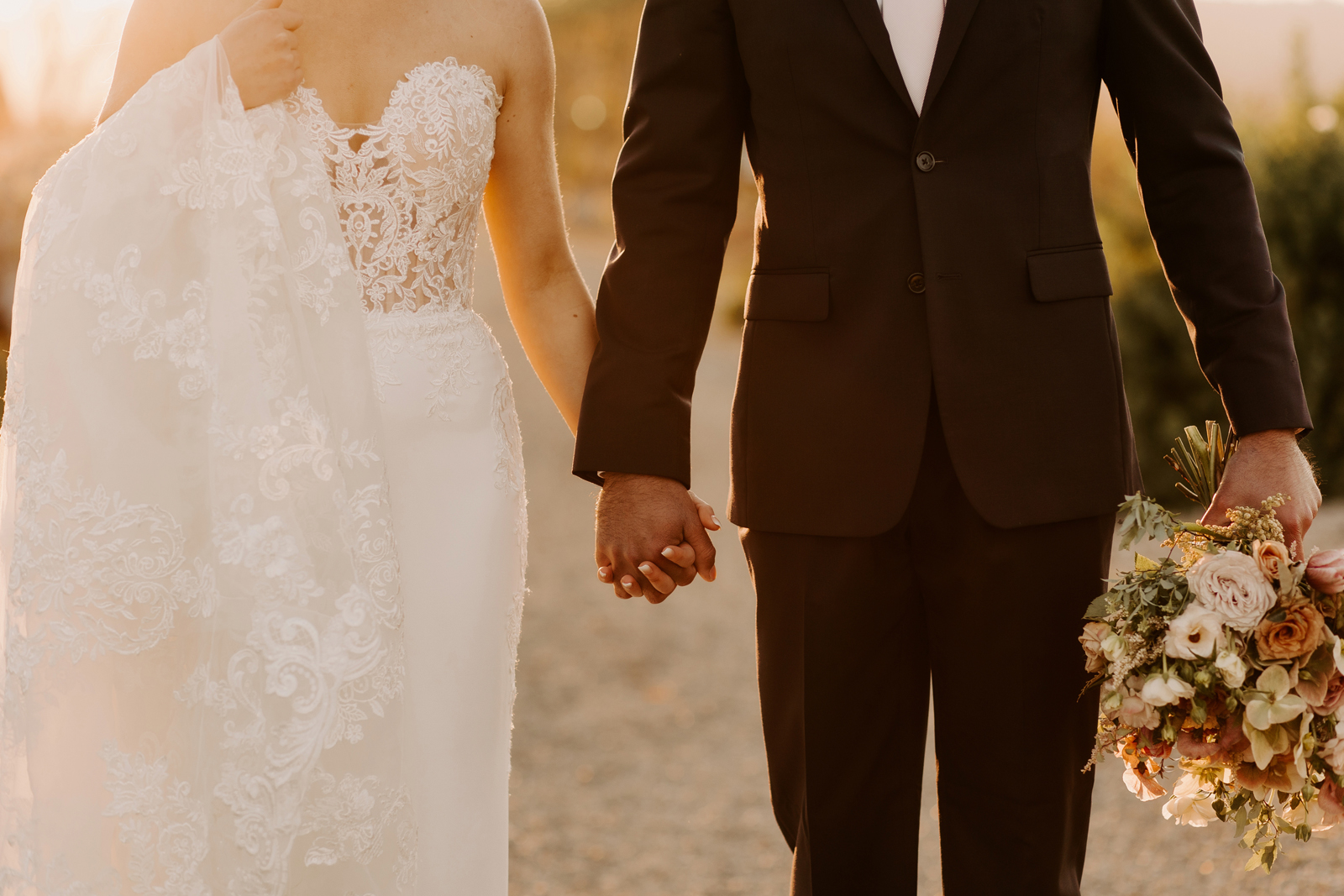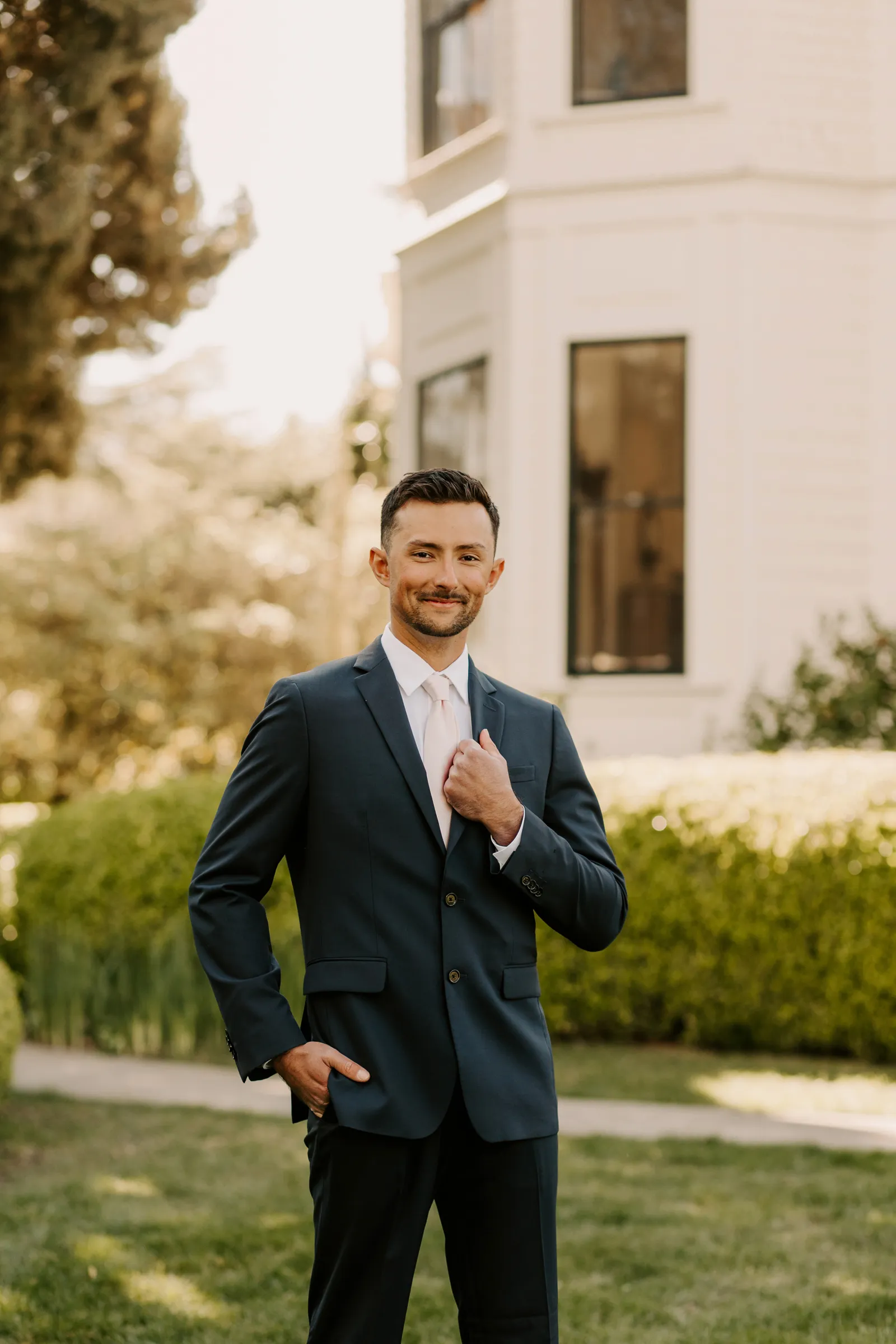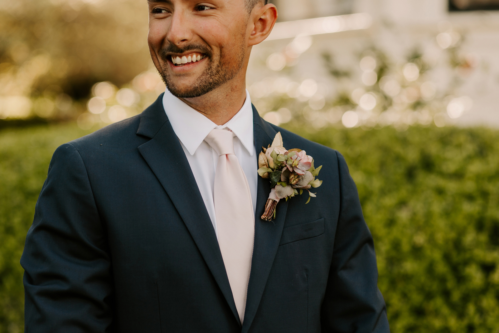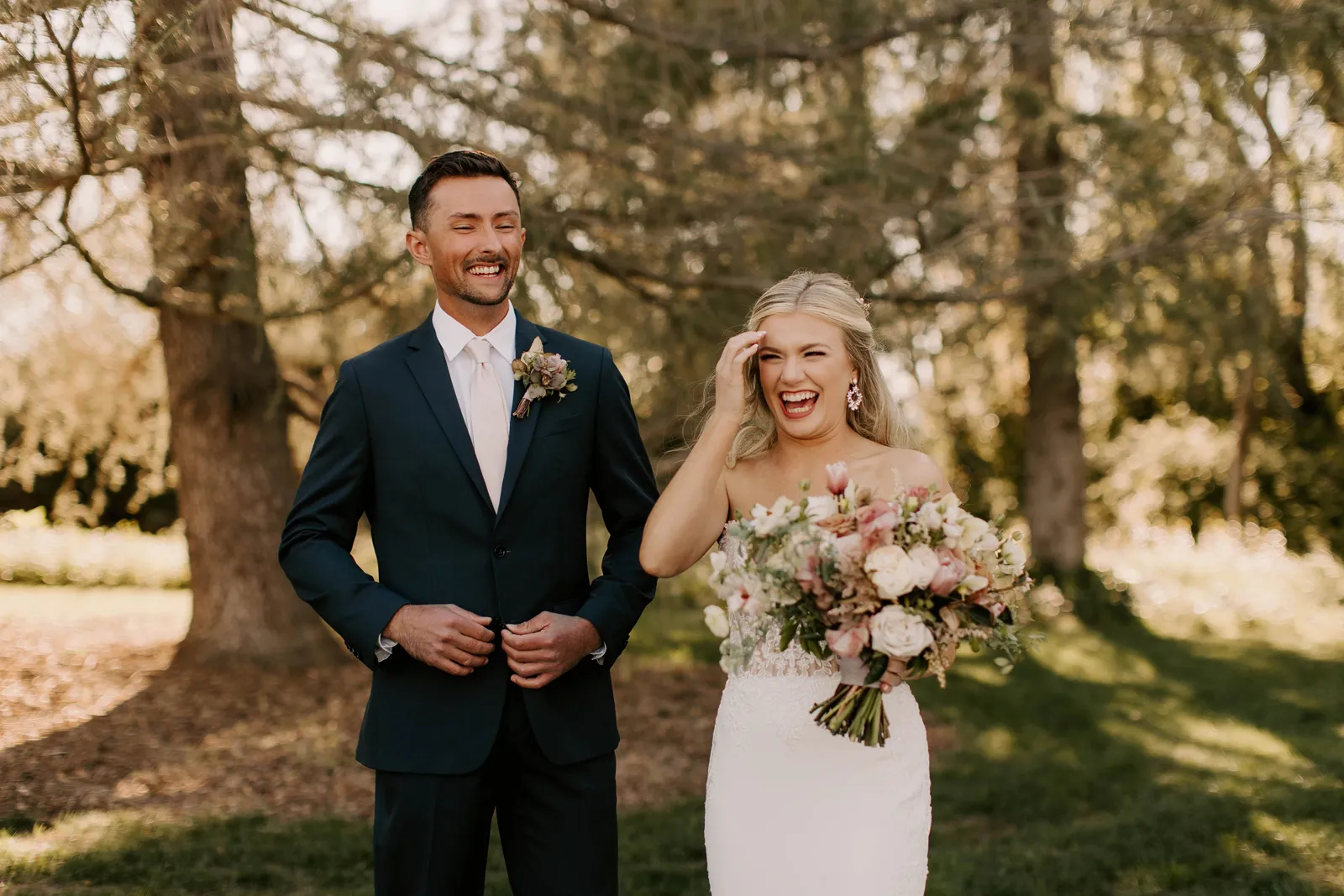 We got engaged in April of 2021. It was just a normal day for us, and Zach proposed in our backyard with flowers and champagne. It was 100% our speed.