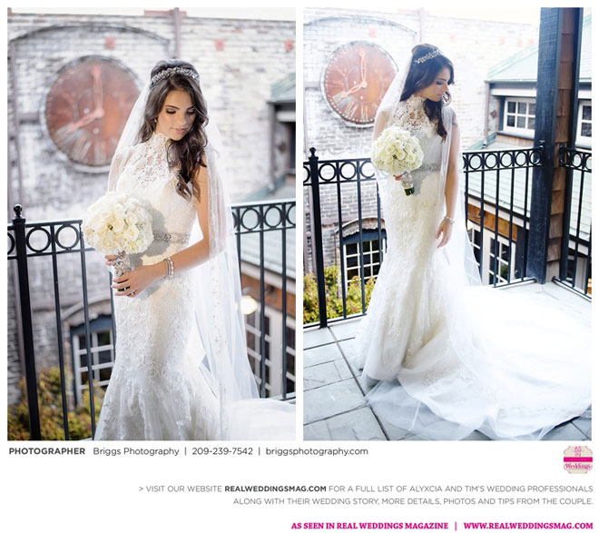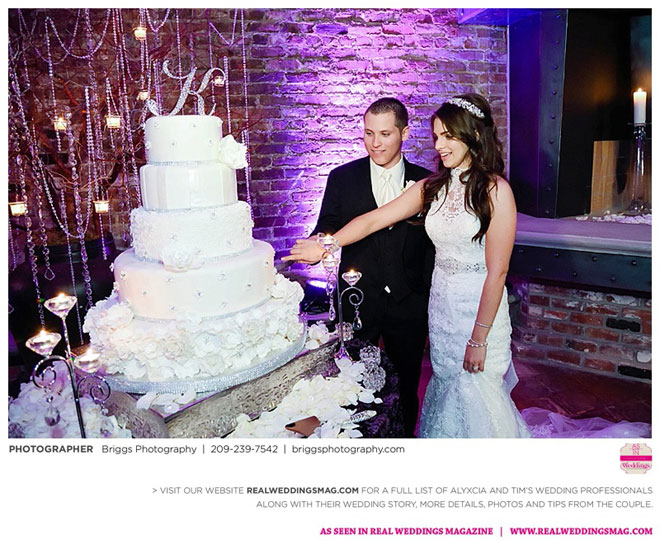 In 2011, that knowledge turned to reality, when Alyxcia discovered photos of engagement rings in Tim’s office at his family’s hot tub manufacturing business. “He was trying to surprise me, but I always seem to find a way to ruin any surprise he has planned,” Alyxcia says. The engagement came following her high school graduation, during a trip to Malibu. “We were sitting on the beach watching the waves when Tim got on one knee, told me how much he loved me and asked me marry him,” Alyxcia recalls.