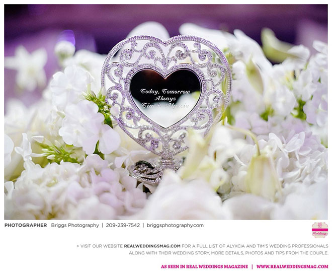 The couple’s 150 closest friends and family comprised the treasured guests, and one very special member of the wedding party was there too—Alyxcia and Tim’s two-and-a-half-year-old son. As a special touch, “We chose to have a unity heart with three pieces and had our son place the third and final piece,” the bride explains.
