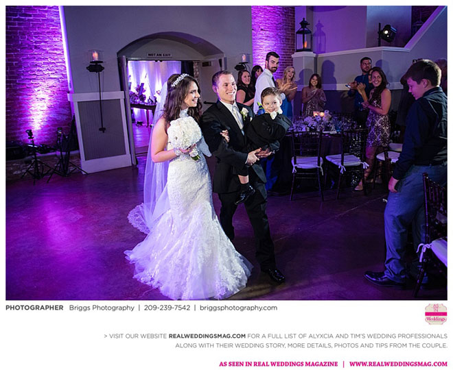 Their son was with them throughout the wedding and reception, and was there for the moment they recall as the most special of the entire day. “I was walking down the aisle and saw my future husband and our son hand in hand,” Alyxcia recalls. “I have never been so happy, and I knew how bright our future was going to be.”