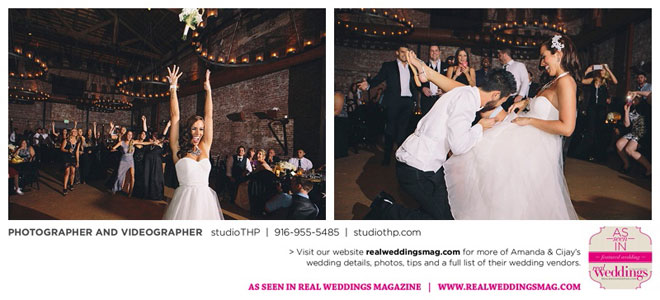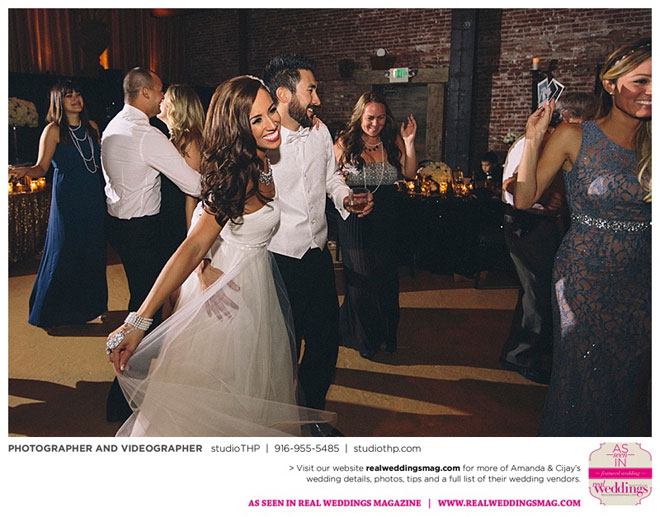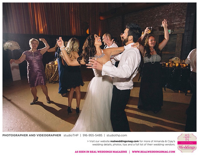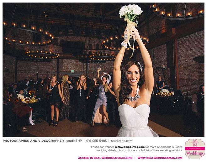 After the sun set on the ceremony, guests moved on to the reception in an old wine barrel room. “The most important things we wanted were good food, plenty of alcohol, and a fun environment that people would want to dance the night away in.” The bride and groom remember one of their favorite moments being the speeches from the maid of honor and best man. “Both of them are naturally funny and entertaining people, so we weren’t expecting the heartwarming and emotional speeches that they gave,” Amanda says. “While there were still a few laughs, the room was filled with mostly tears of love.”