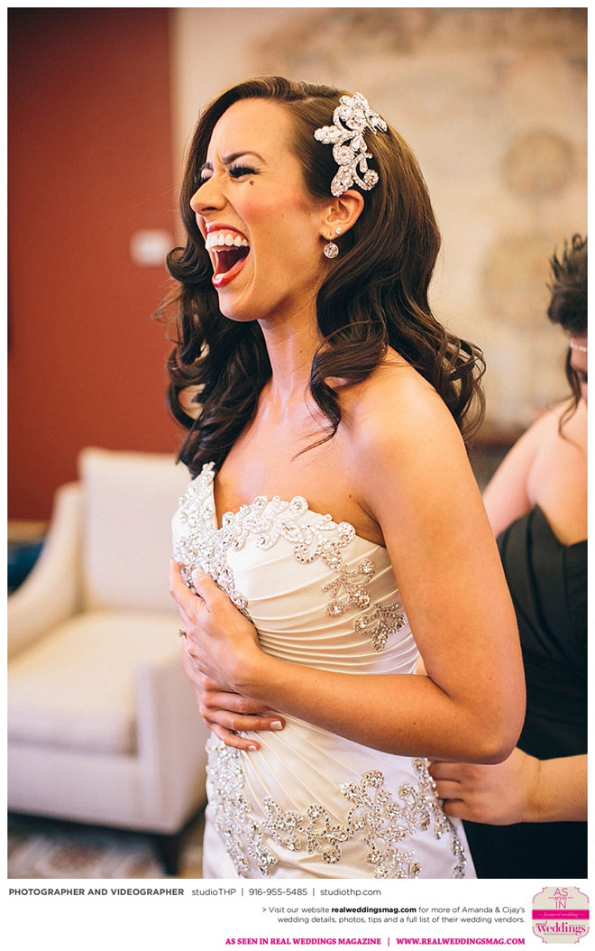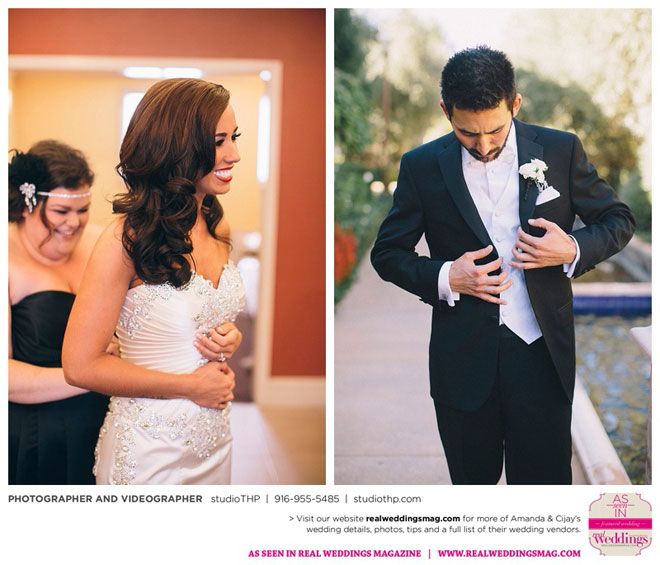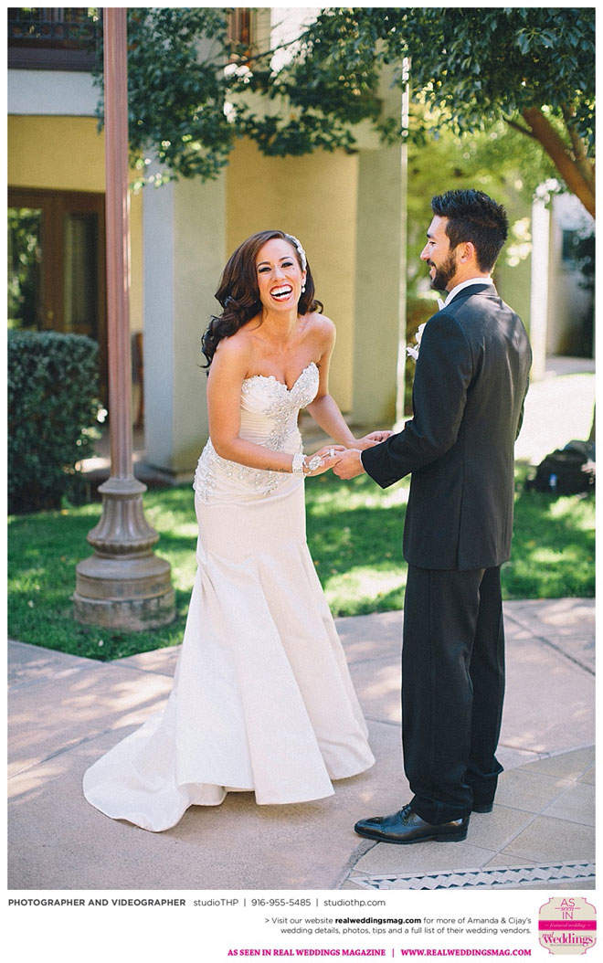 Amanda and Cijay met while working as a cocktail waitress and busser in a Las Vegas nightclub. “We hit it off right away, but we were both too nervous at first to ask each other out,” recalls Amanda. “After a few months of hanging out in groups, Cijay finally got the nerve to ask me out on a date.” Knowing that Amanda was a professional dancer, Cijay took her to see the show Le Reve. “It was so thoughtful that he took the time to find out what I was interested in to make our first date really special.”