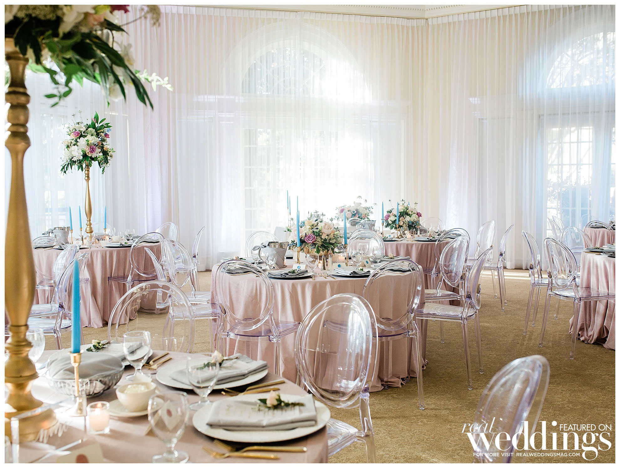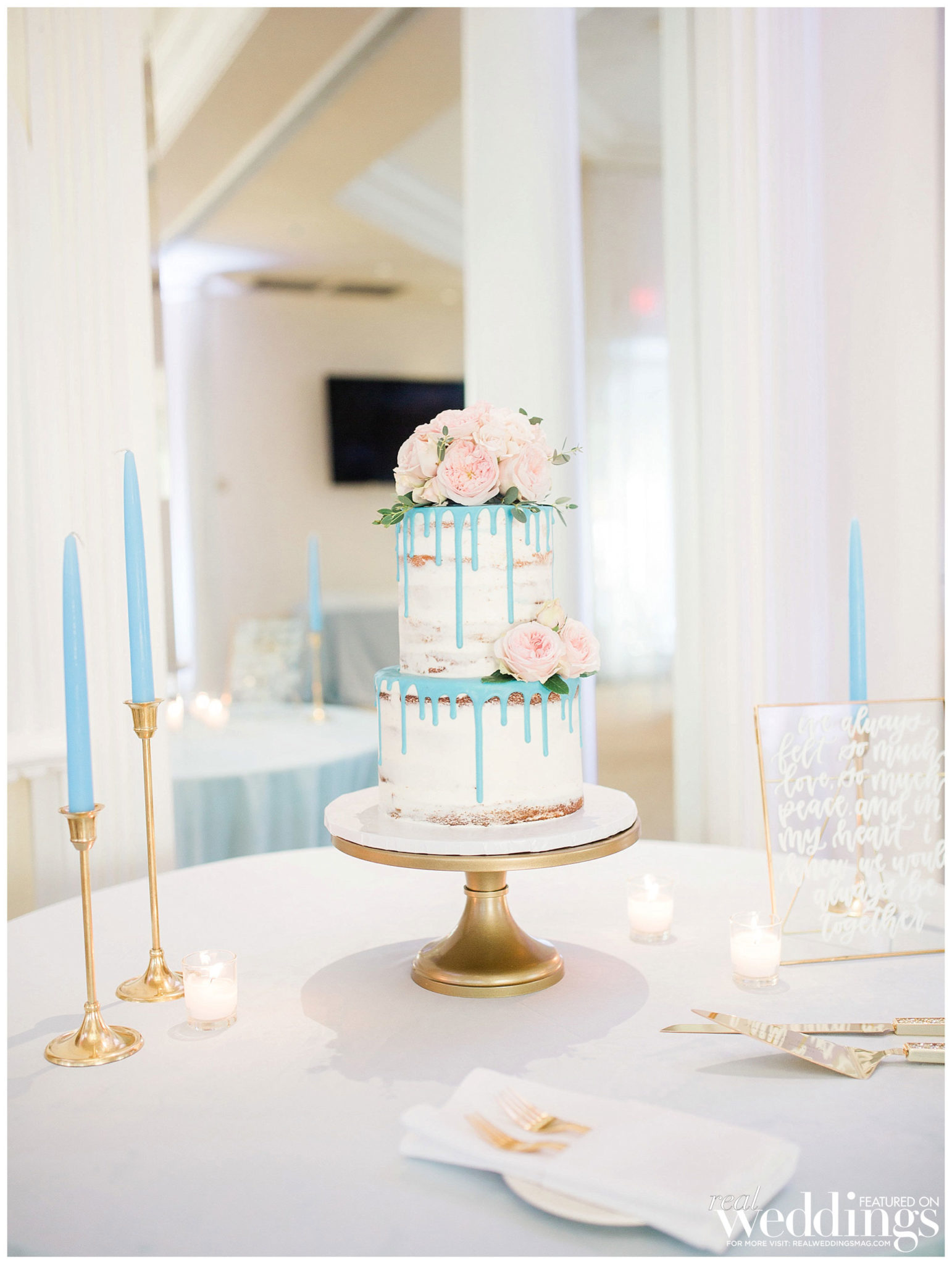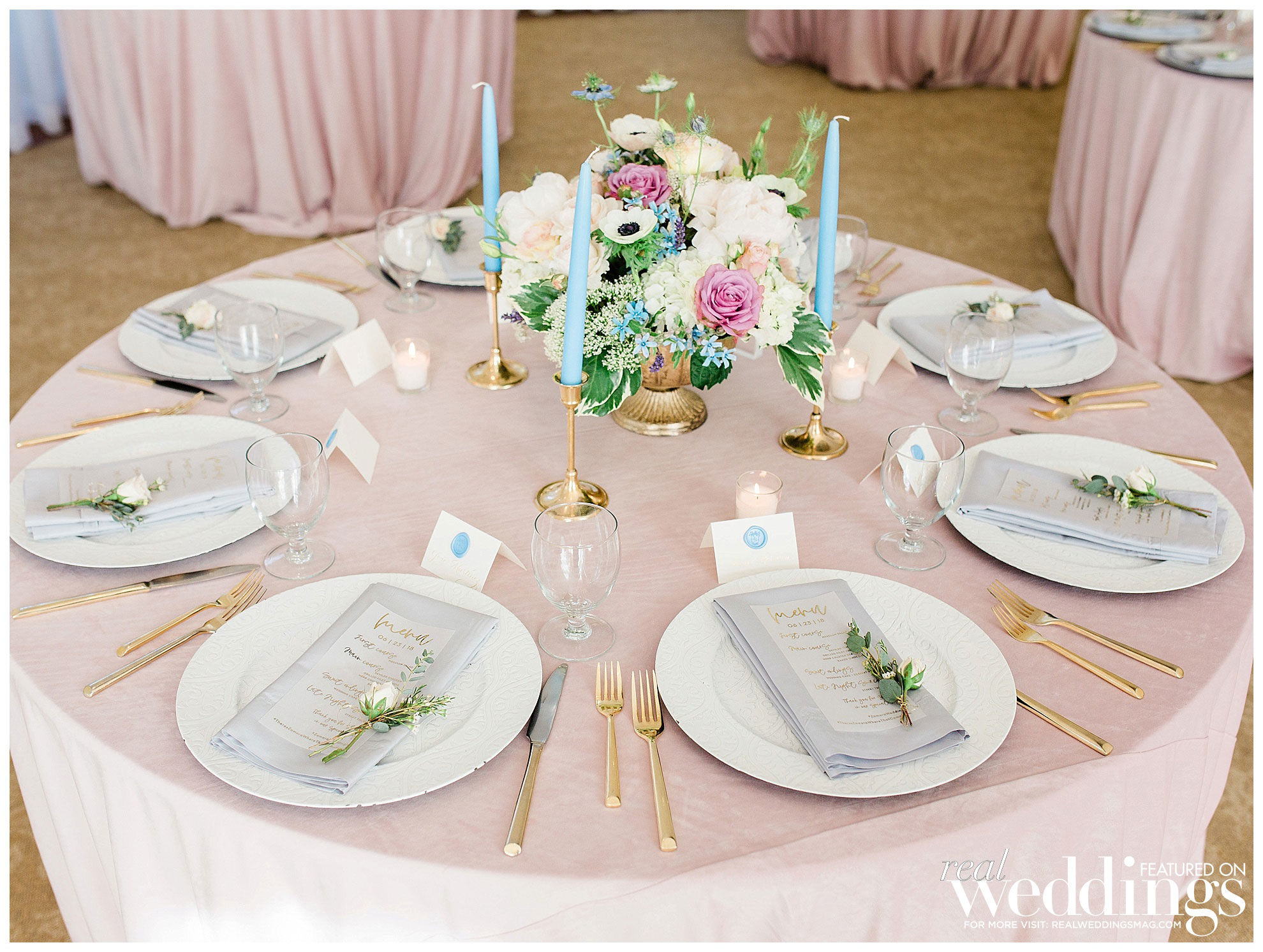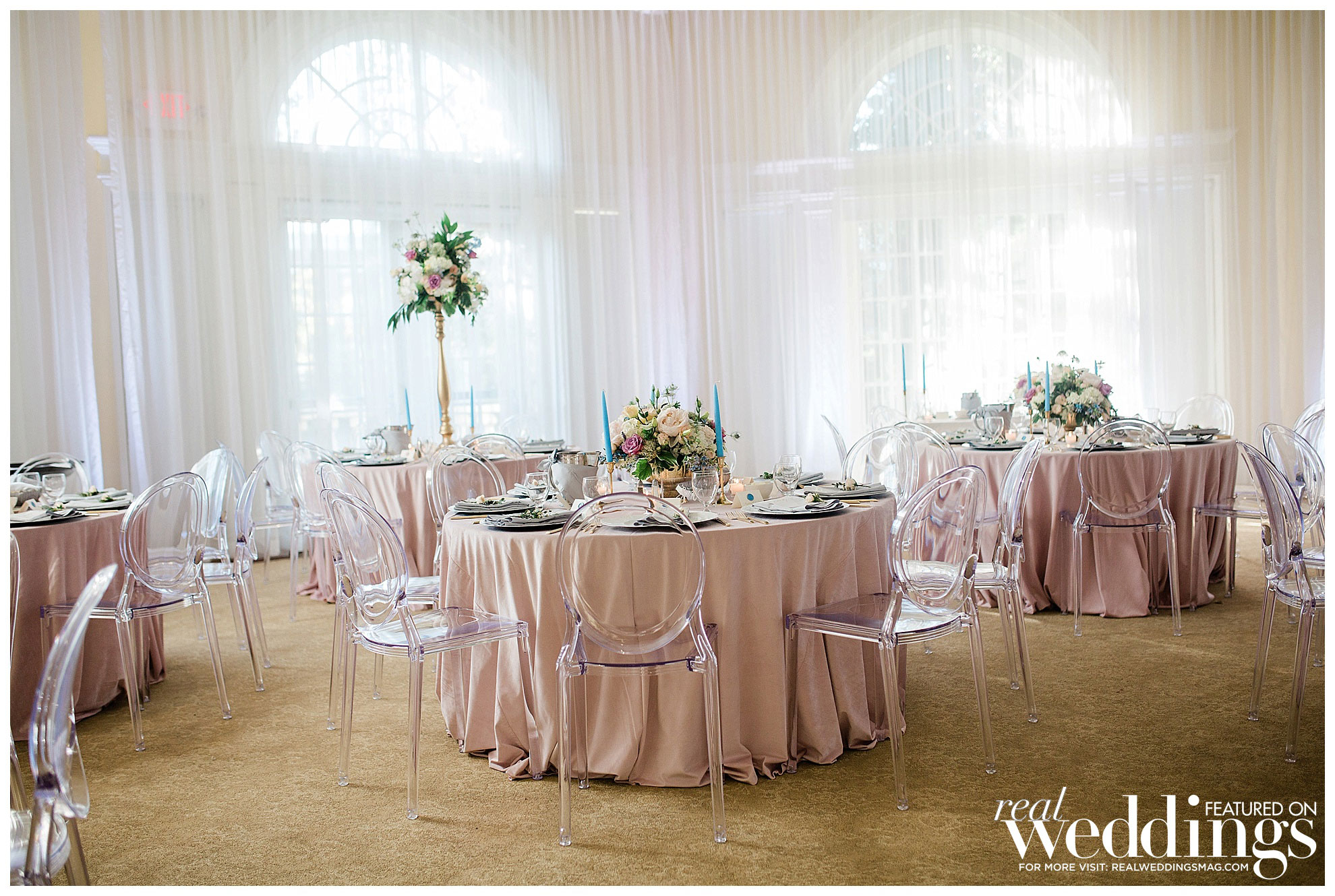 Amanda spent much of her wedding planning efforts on the décor in the reception venue, with a palette she describes as “light and airy with florals highlighting every table.” They both say, though, that in addition to focusing on the aesthetic elements, food was also a big factor, from the late-night street tacos to the cake, with both apricot and strawberry-citrus buttercream tiers.