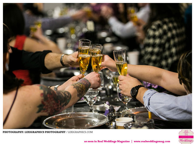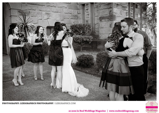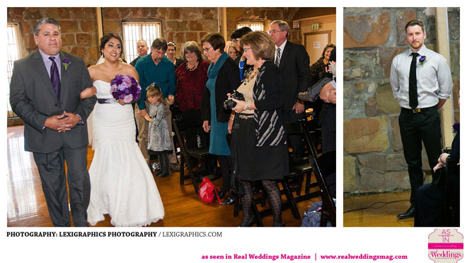 Both the ceremony and reception were held at the Benicia Clock Tower. The couple liked the mix of rustic and chic and added their own DIY décor. The bride wore earrings her mother wore at her own wedding, as well as one of her mother’s rings, covering the tradition of wearing something old and borrowed. Her dress covered new, and she skipped the addition of blue.