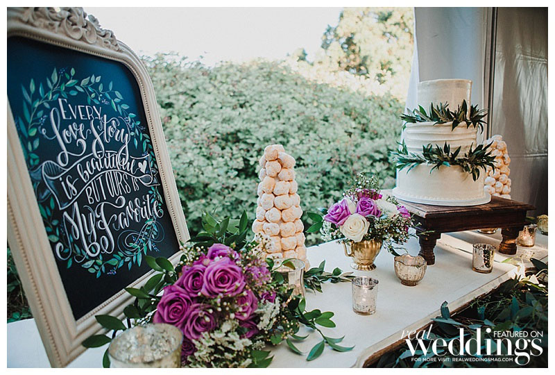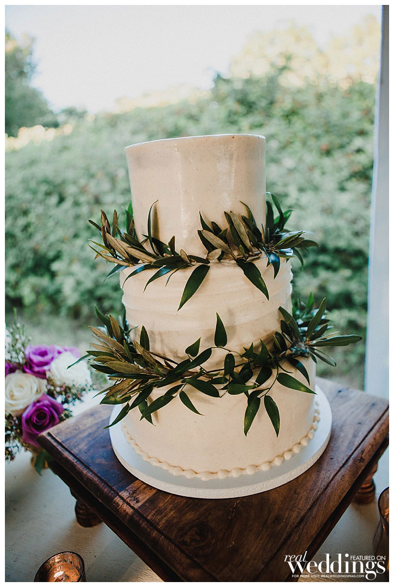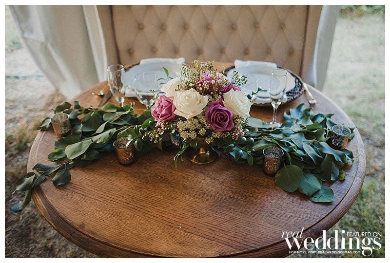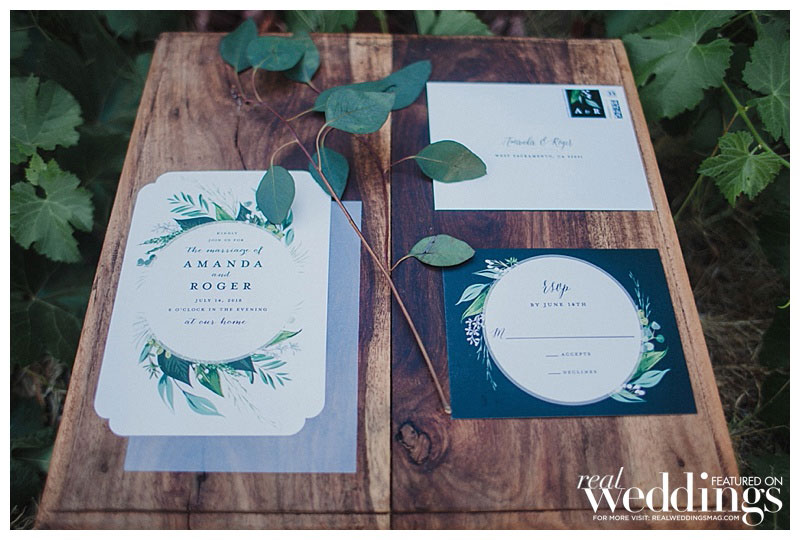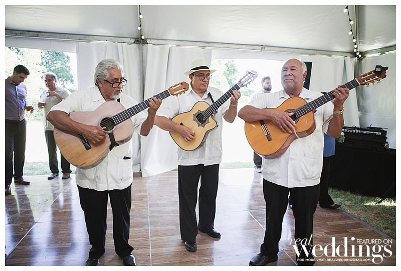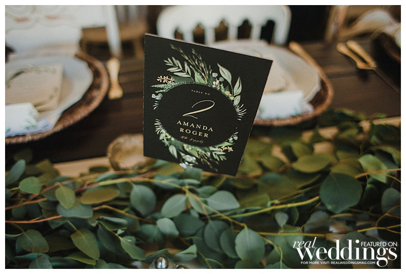 “We settled pretty instantly on the venue: our home,” she says. “I suggested hiring a wedding planner since we had a lot of landscaping and home improvements to focus on before the big day, and I was pregnant. Roger worked evenings and weekends to get the property wedding-ready in just four months!” Amanda envisioned an outdoor wedding under a tent with a romantic and rustic theme. “It turned out spot-on in terms of what I wanted,” she says.