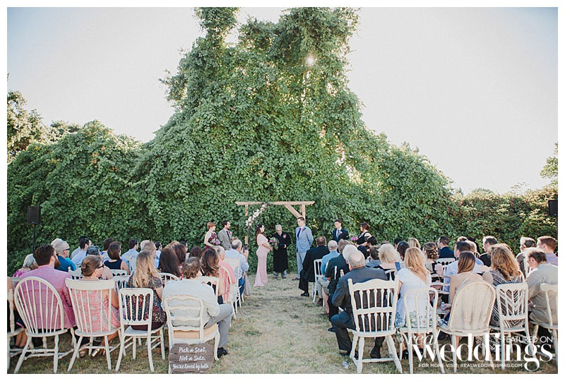 They both got ready together at their house. “I wasn’t worried about him seeing me before the ceremony and I even showed him my dress beforehand. I didn’t want to be too formal about those kinds of traditions,” she says. Another tradition Amanda wanted to break? Wearing white. “I went with a blush dress instead, and I didn’t want a veil either,” she says.