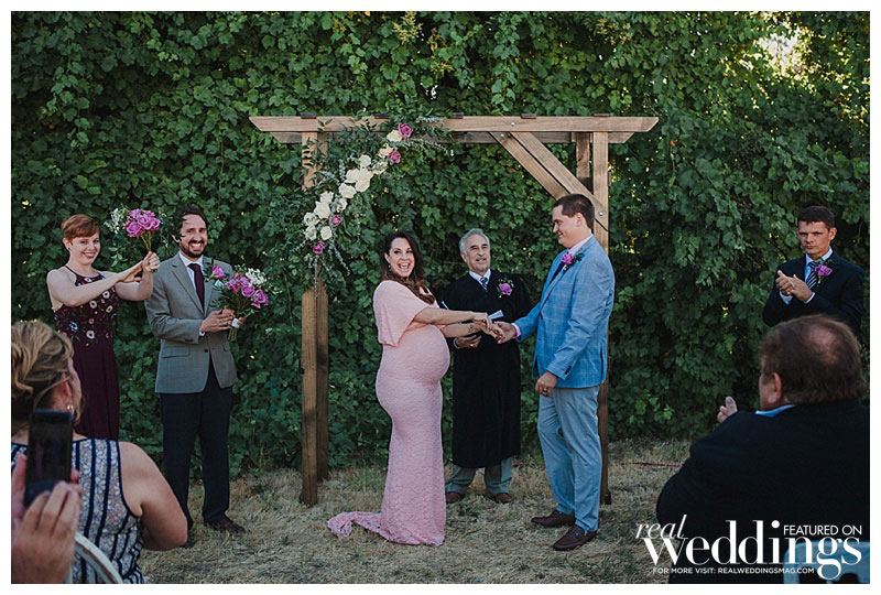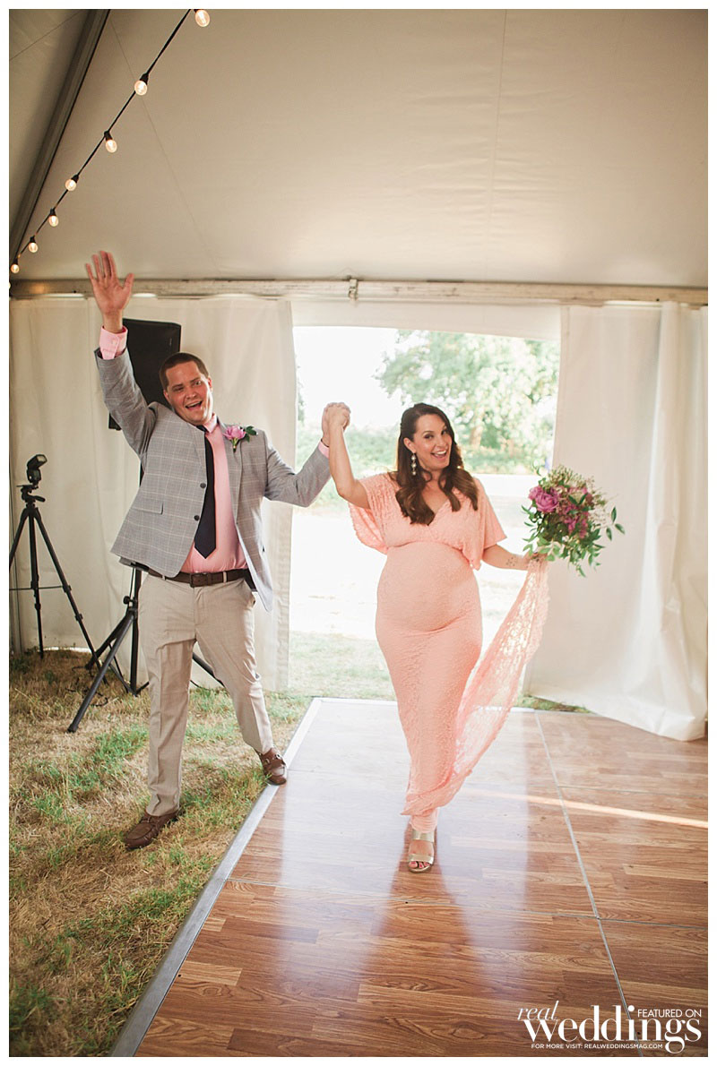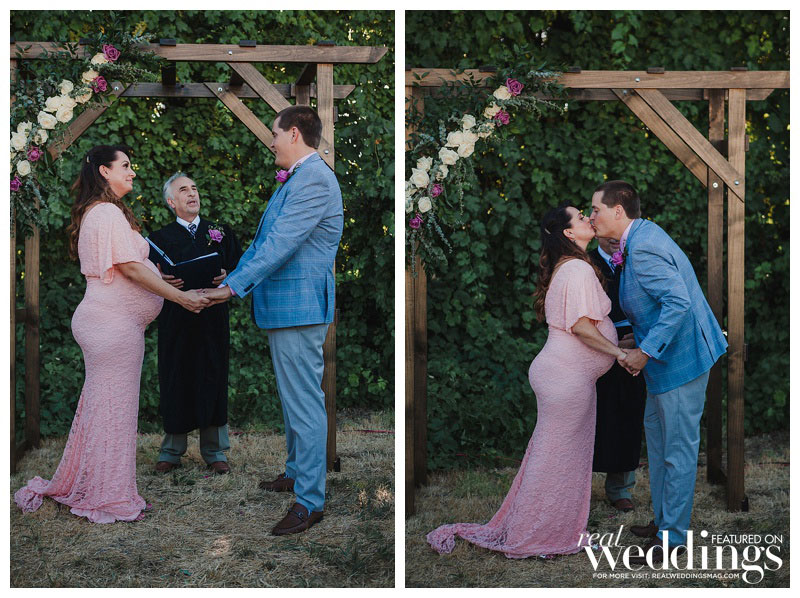 They played with the idea of eloping to Las Vegas. “We both love Las Vegas and thought it would be really cool to get married in an old chapel by an Elvis impersonator,” she says. However, after sharing the news of a wedding and a baby with their families, they realized they wanted to share all this joy with those closest to them.