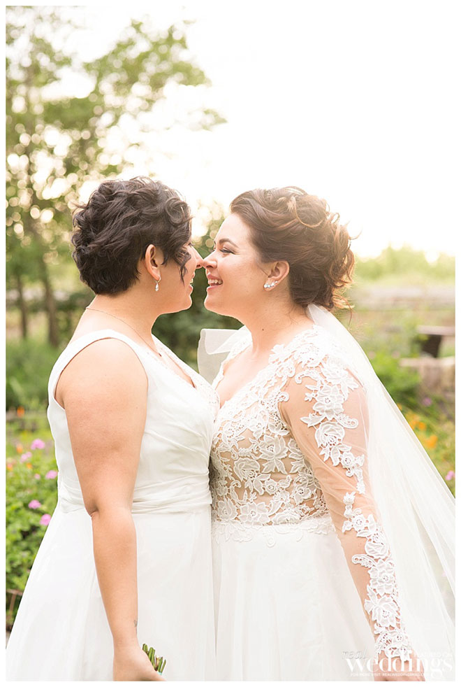 Mandy and Vanessa met at Ikea. Yes, Ikea. Vanessa was there with her son, and Mandy was shopping with her friend, Sonia. “Sonia, who was a mutual friend, saw Vanessa from across the store and yelled ‘Nenna!’” remembers Mandy. The pair had met a couple of times prior at mutual friends’ events, however, this time it clicked. “We both told Sonia we thought the other was cute, and we hung out that night, and the rest is history.”
