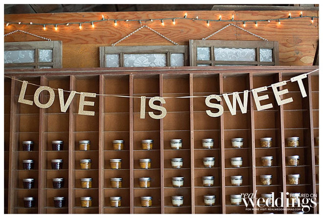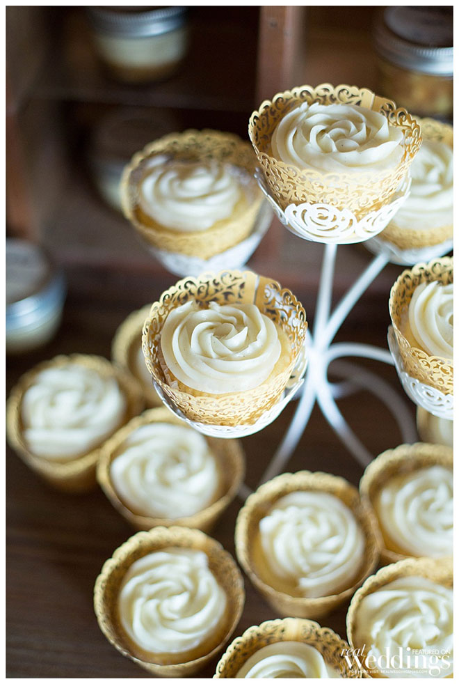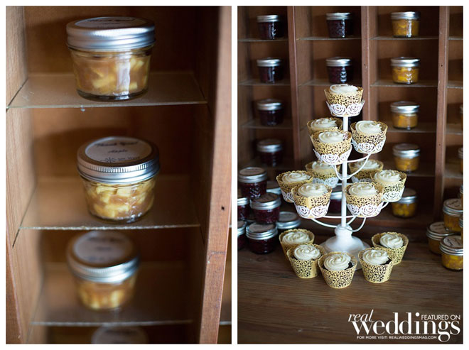 Our favors were made up by Brandy West of Go West Baking. She created mini mason jar pies, and crafted the ‘thank you’ sticker for the top. They were displayed in a large slot cabinetry, and it was the absolutely perfect dessert and cake display! Plus EVERYONE loved the pies, cake, cupcakes, and orange cheesecake!