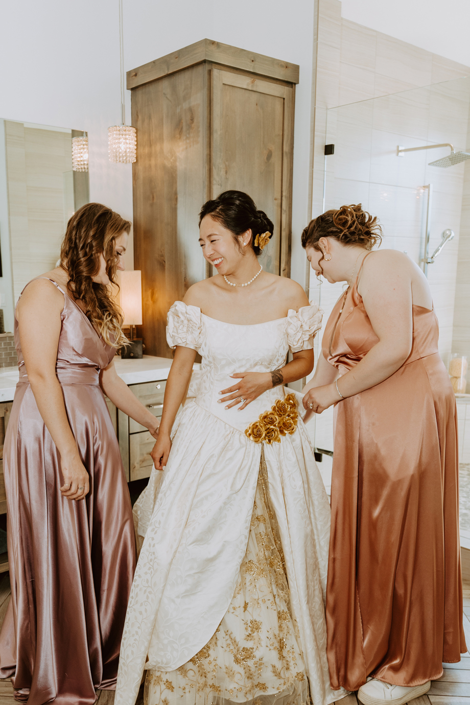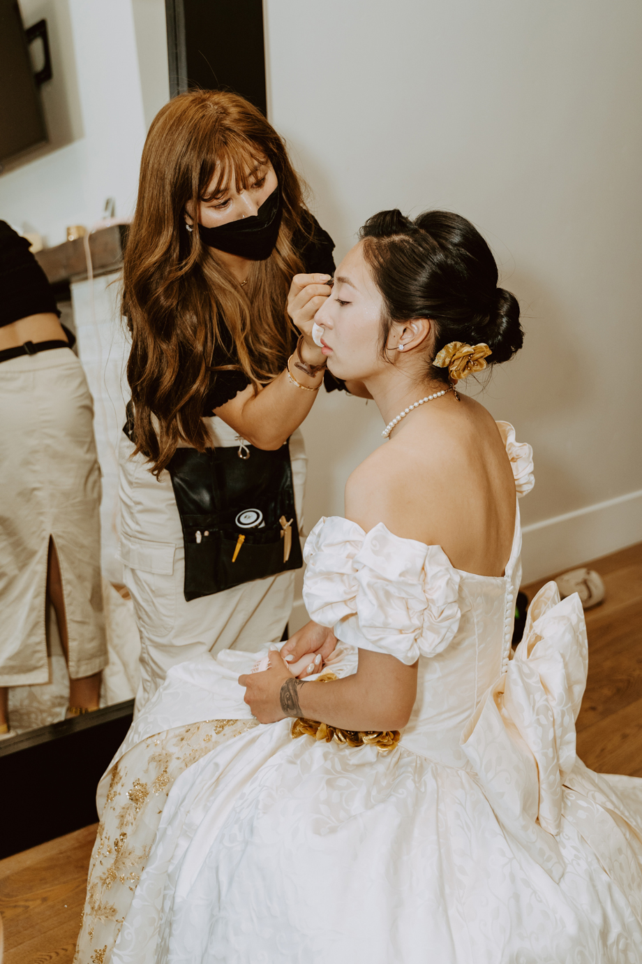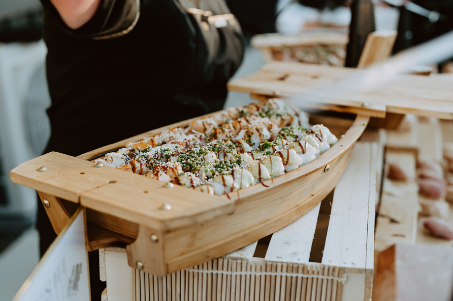 At first, I wasn’t sure how I wanted everything to come together. Luckily, my wedding planner, Kendall with Kendall Melissa Events, helped simplify the process by asking me to describe the feeling I wanted for my wedding in just three words. I chose “fun,” “memorable,” and “relaxing” to guide the vision for the day. Beyond that, all I knew was that I wanted delicious food for everyone to enjoy—that’s why I made sure to offer a variety of options, including Chinese cuisine, a ribeye-carving station, sushi bar, and even a pizza-turned-taco bar. For dessert, we had Dippin’ Dots, a coconut pandan crepe cake, and chocolate cake to close out the night!