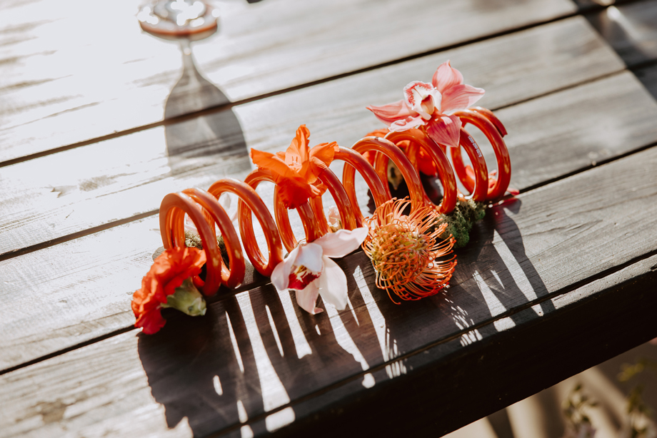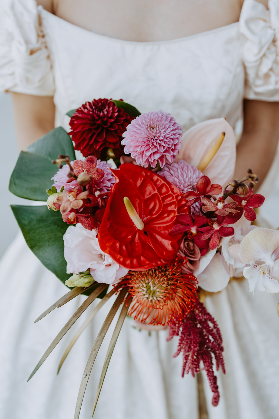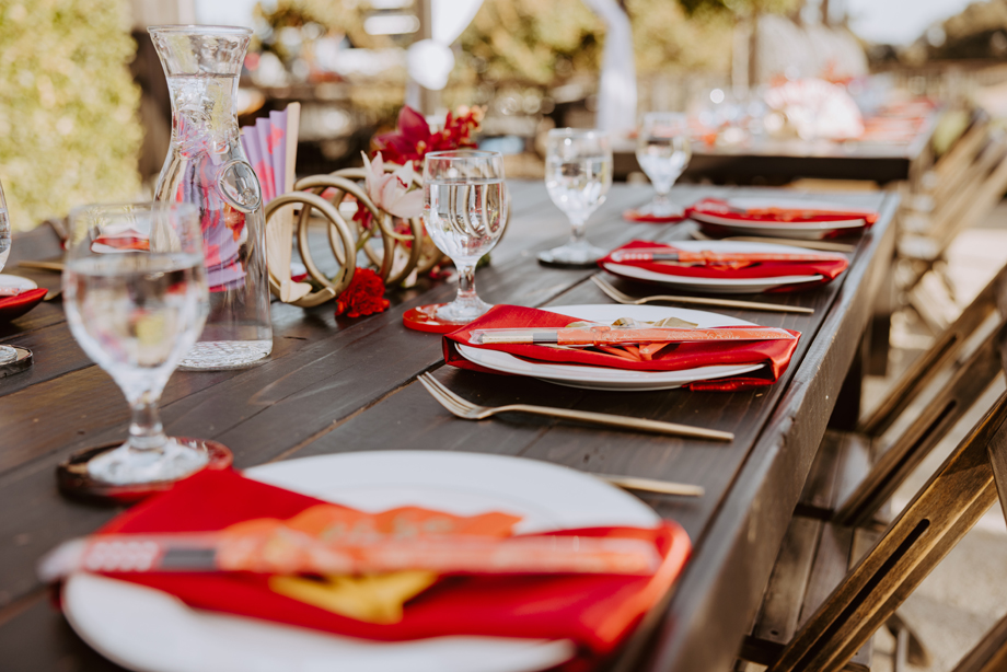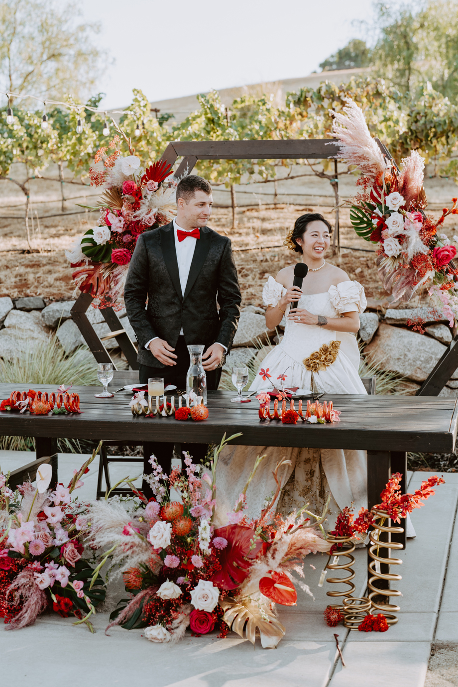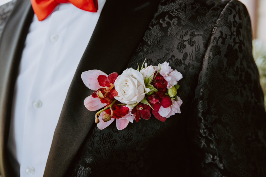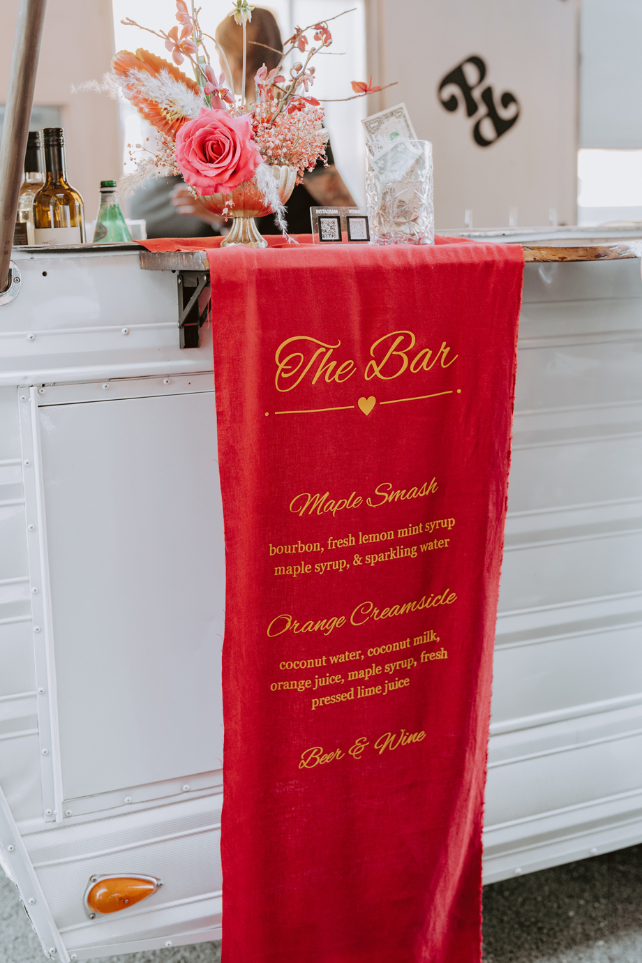 Our favorite detail from our wedding day was how our color palette of vibrant red, bubblegum pinks, and shiny gold came to life throughout the florals, favors and decor. The rich, bold hues added such a festive and joyful energy to the entire celebration. From the stunning floral arrangements to the personalized touches in our favors, every detail reflected the playful and lively spirit we wanted for our special day. It was a perfect blend of elegance and fun that really made the day unforgettable!