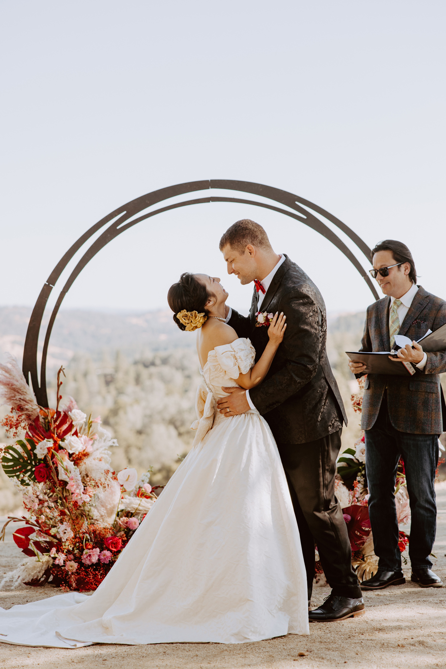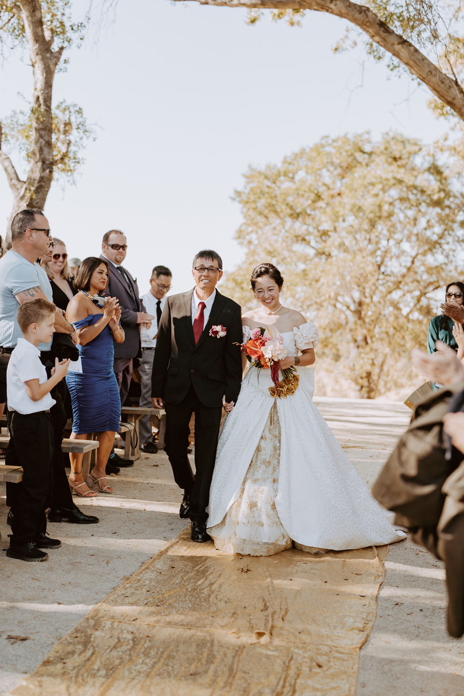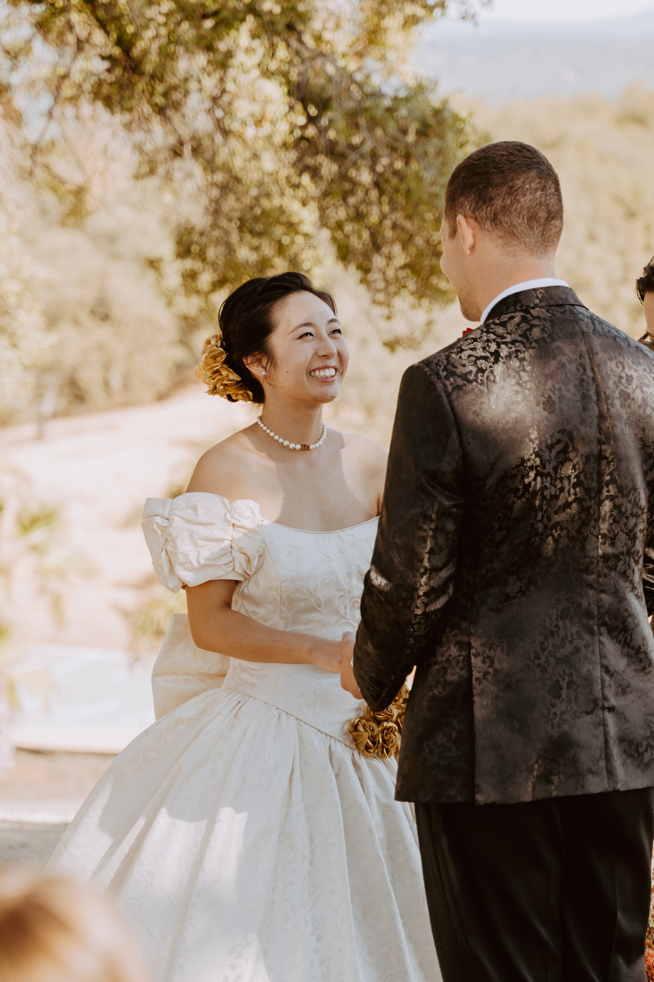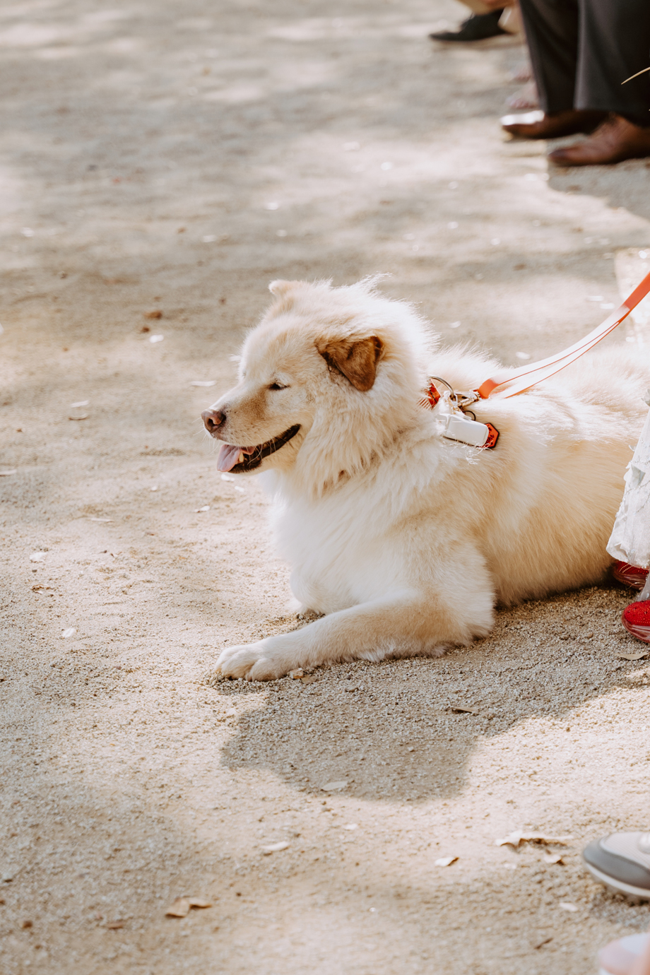 The ceremony was simple, with no bridal party or special scripts, but the backdrop of the mountains and the ceremony being shaded by oak trees made it absolutely breathtaking. The one special touch we did include was having our sweet dog, Behr, walk down the aisle as our ring bearer. He was the most handsome boy!