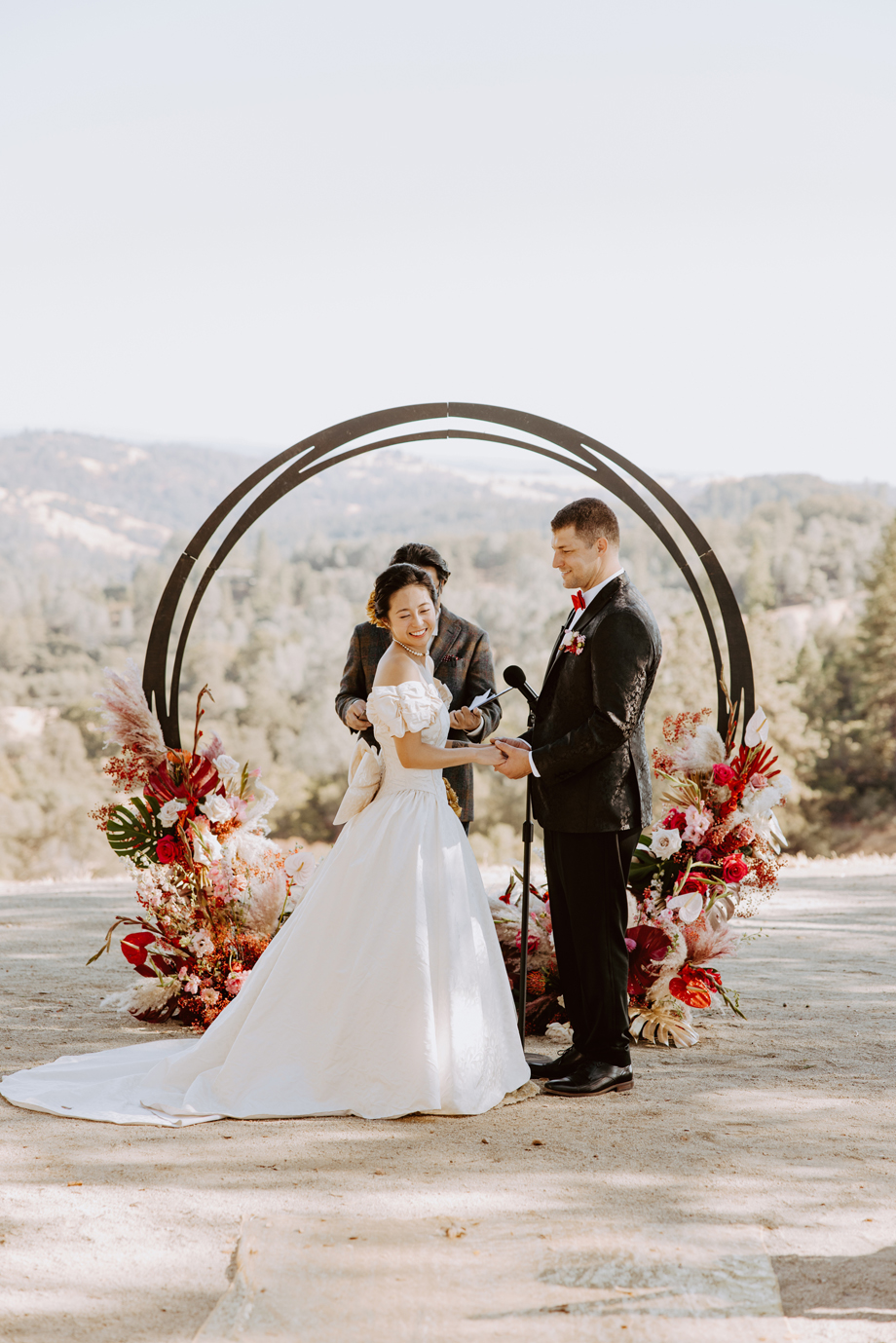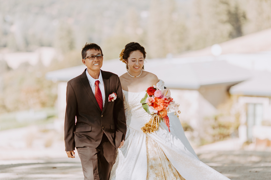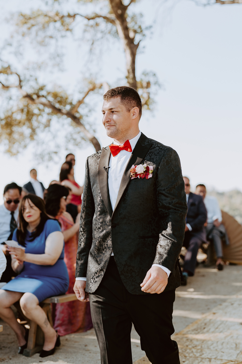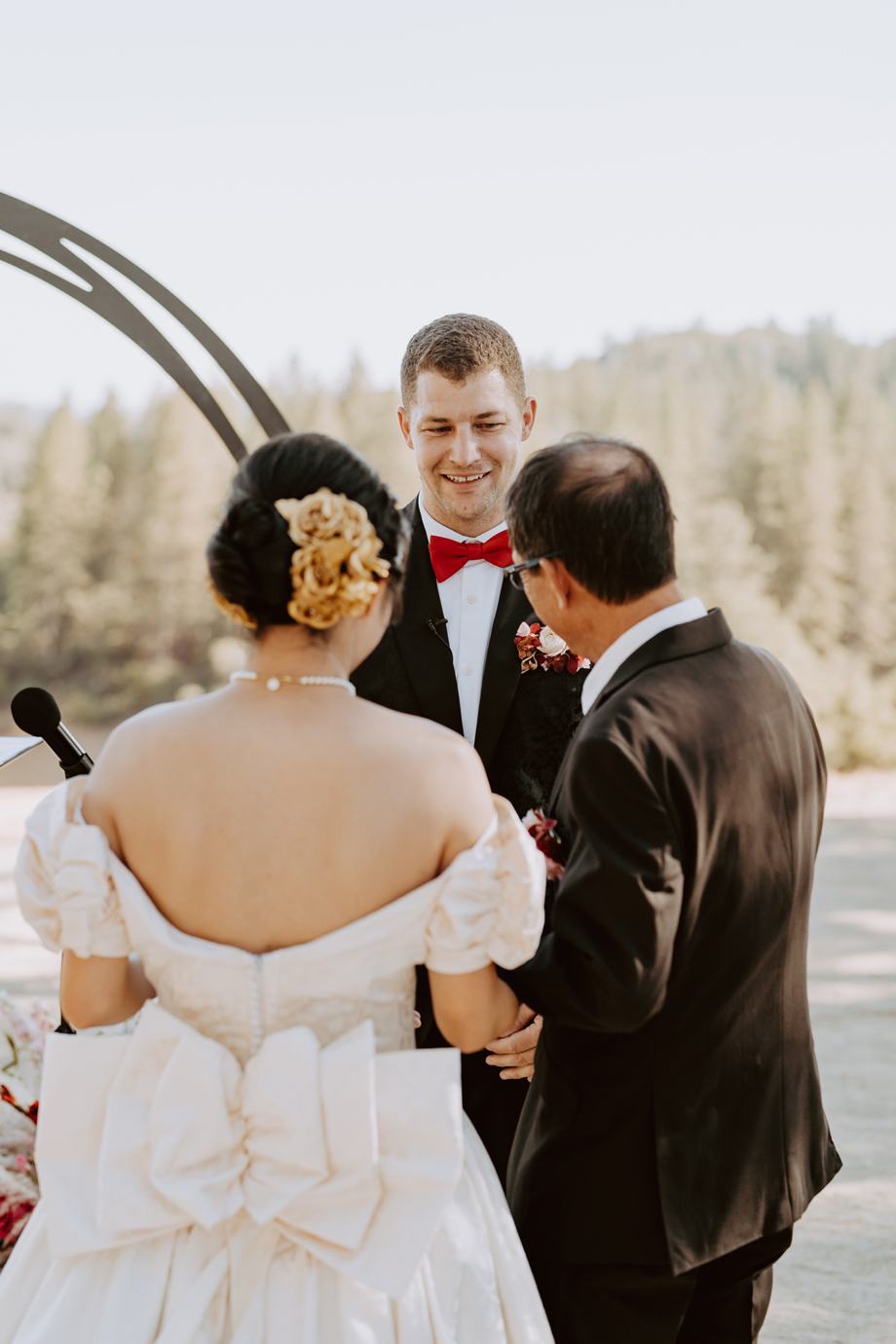 The ceremony was simple, with no bridal party or special scripts, but the backdrop of the mountains and the ceremony being shaded by oak trees made it absolutely breathtaking. The one special touch we did include was having our sweet dog, Behr, walk down the aisle as our ring bearer. He was the most handsome boy!