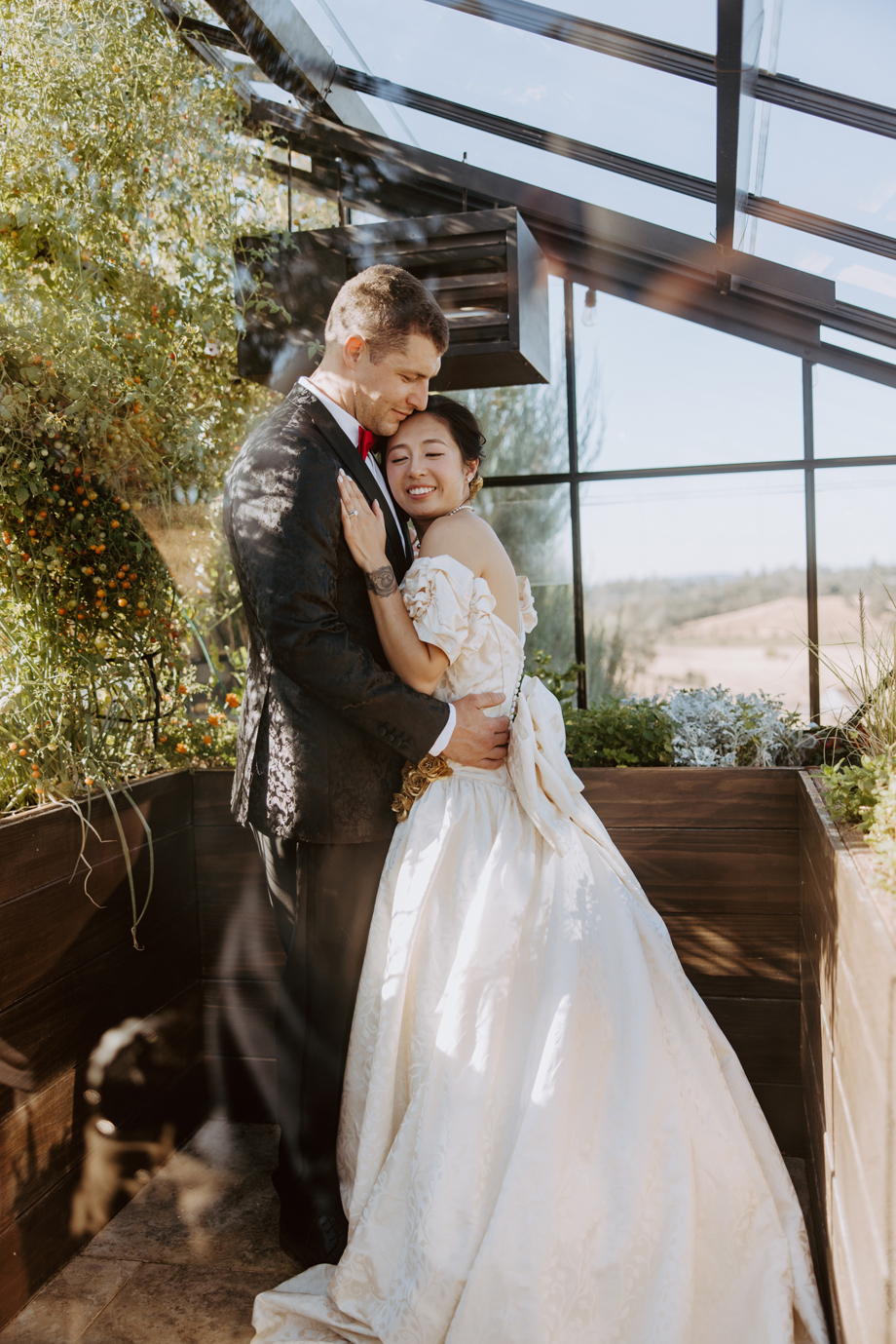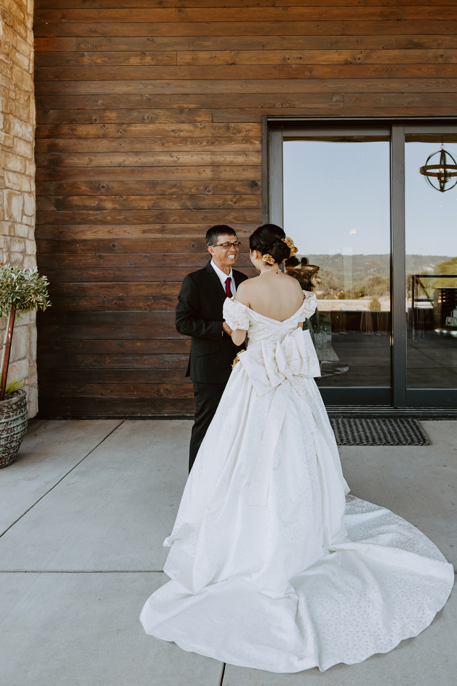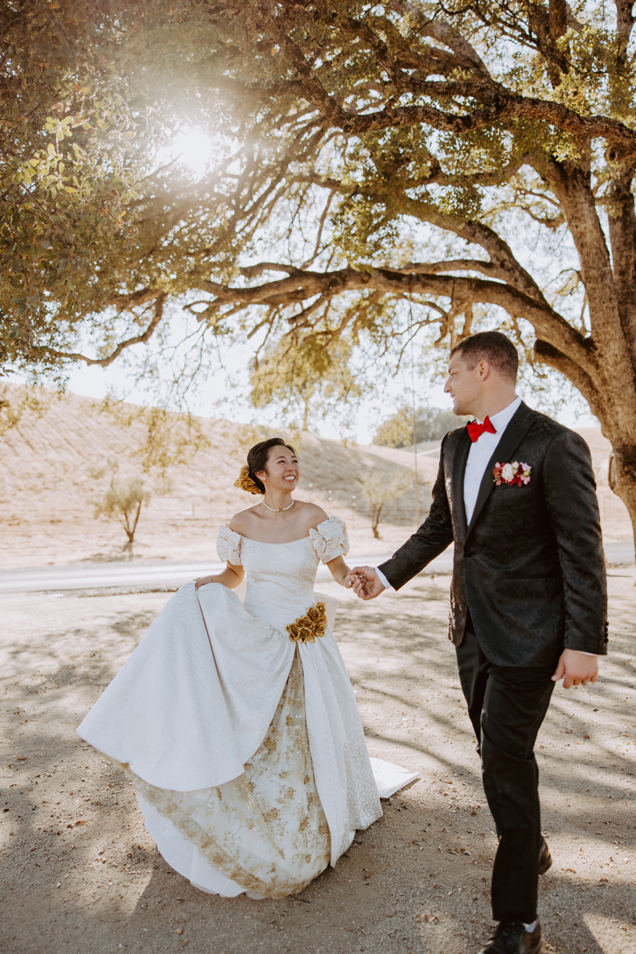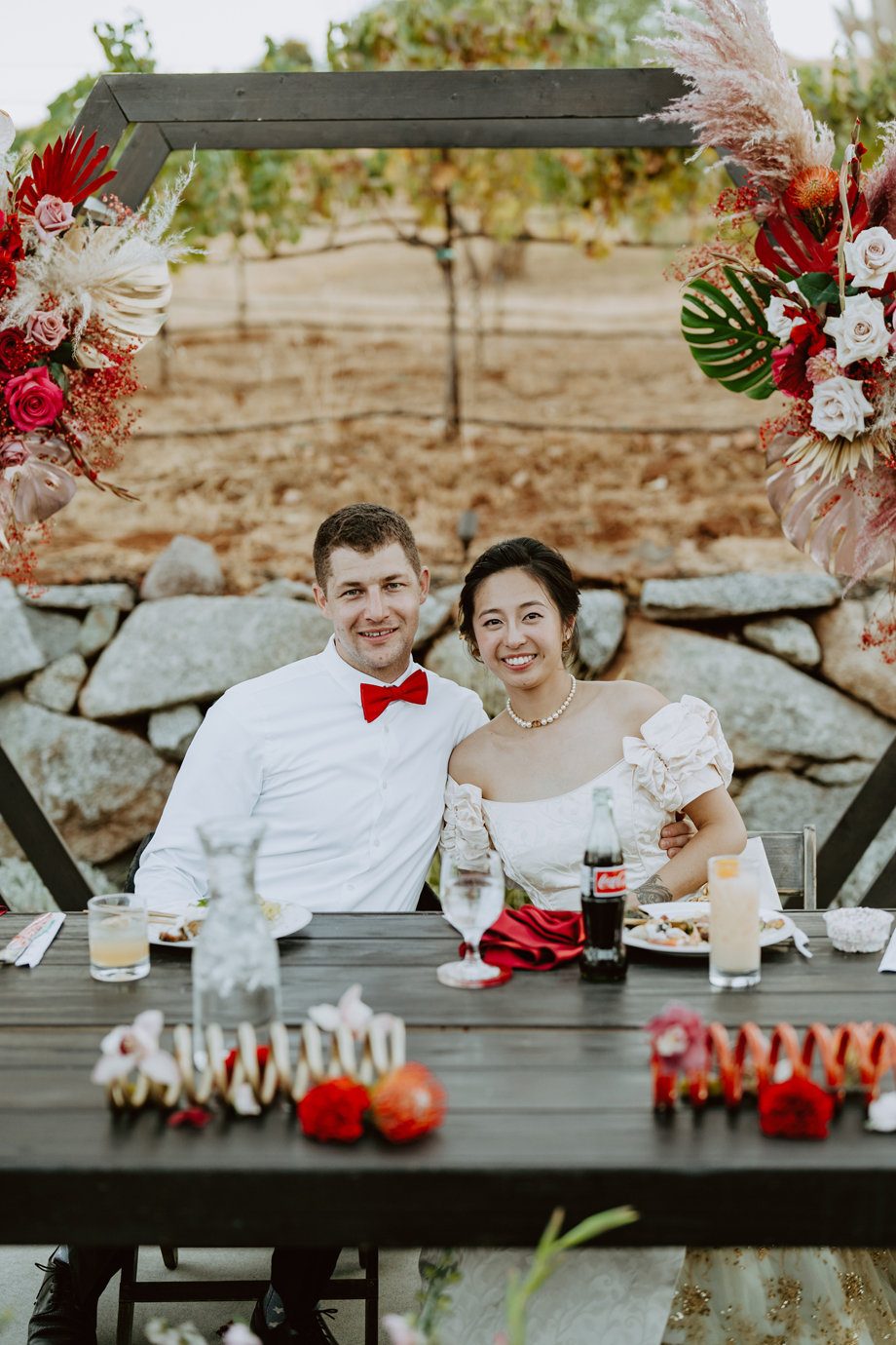 The ceremony was simple, with no bridal party or special scripts, but the backdrop of the mountains and the ceremony being shaded by oak trees made it absolutely breathtaking. The one special touch we did include was having our sweet dog, Behr, walk down the aisle as our ring bearer. He was the most handsome boy!