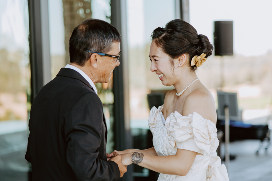 A memorable moment from our reception was when our cake cutting turned into a full-on karaoke session. When the famous Chinese song Shang Hai Tan (Bund in Shanghai) by Frances Yip played, my mom, sister, grandma, and all of my aunties gathered and sang their hearts out!