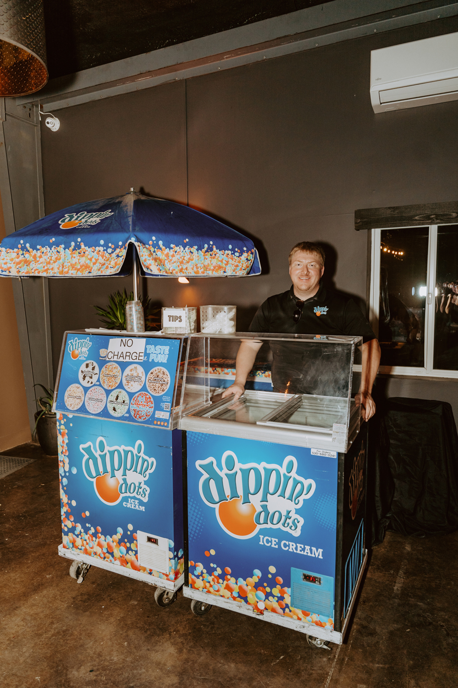 Another vendor worth mentioning is Dippin’ Dots. They were my favorite unique addition to the day. On a hot wedding day, they provided a fun and delicious dessert option that was an instant hit! Dippin’ Dots are my favorite dessert, and they were non-negotiable for our wedding. I wanted to mention them because many people may not know that they cater to events like weddings, making them a fun and tasty option for anyone looking to add something different to their celebration.