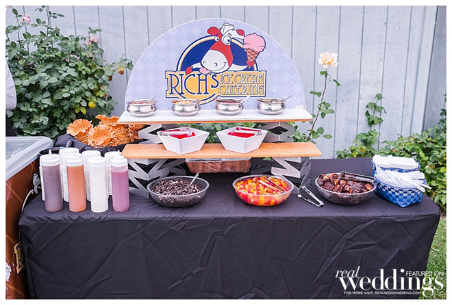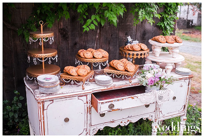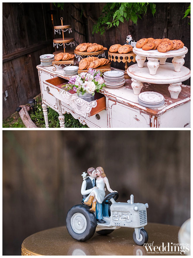 The BBQ meal, prepared by a family friend, even incorporated some of the couple’s own lamb. “We raise sheep and we served lamb sliders,” says Andrea, “They were amazing!” Since the bride prefers ice cream to cake, the couple dished up ice cream with waffle cones, as well as cookies.