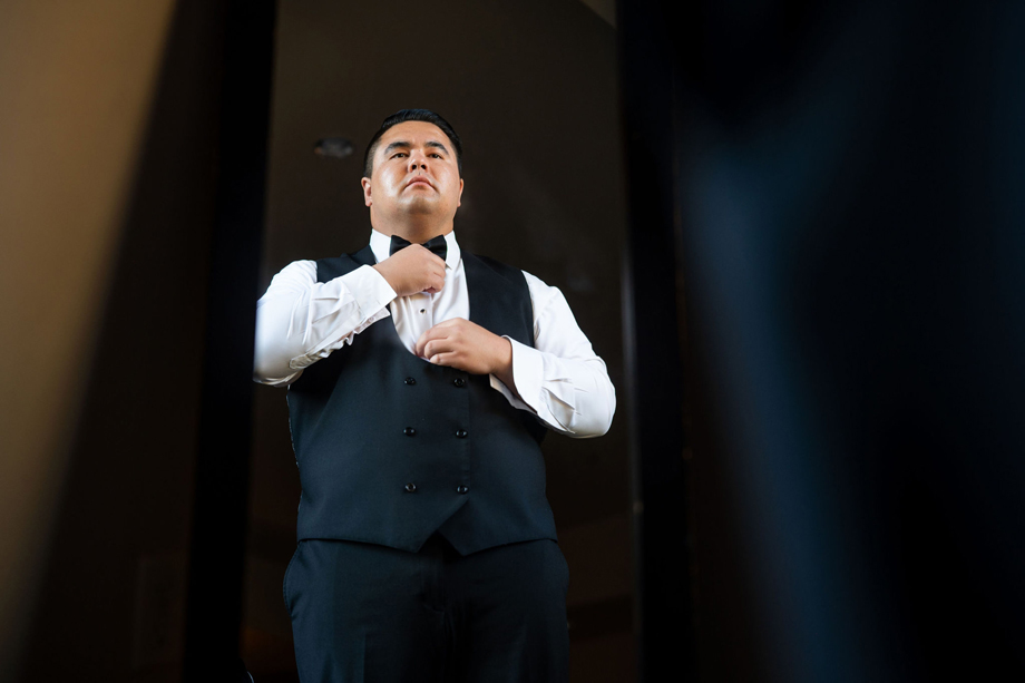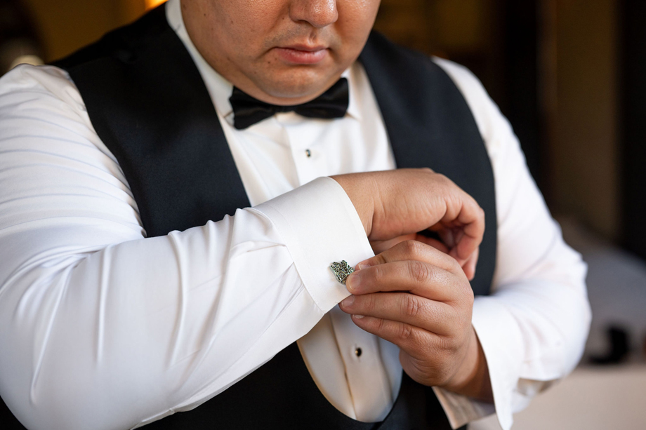 Some of our favorite details were the little things that had their own stories – Star Wars cuff links Andrea had gifted to Zach for one of their first anniversaries, Zach’s watch that was a gift from his late mother, Andrea’s pearl earrings that were a gift from her Mother from high school, and our wedding bands that were engraved as if they were two parts of one whole.
