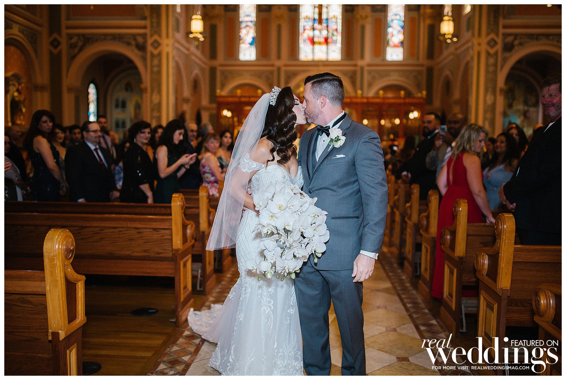 A year later, they married at Cathedral of the Blessed Sacrament. Angela’s childhood priest officiated the ceremony. “Father Bernard Poggi led the ceremony in such a seamless and elegant way,” she says. “We felt so much love radiating from each other and our family members, it was truly a surreal experience.”