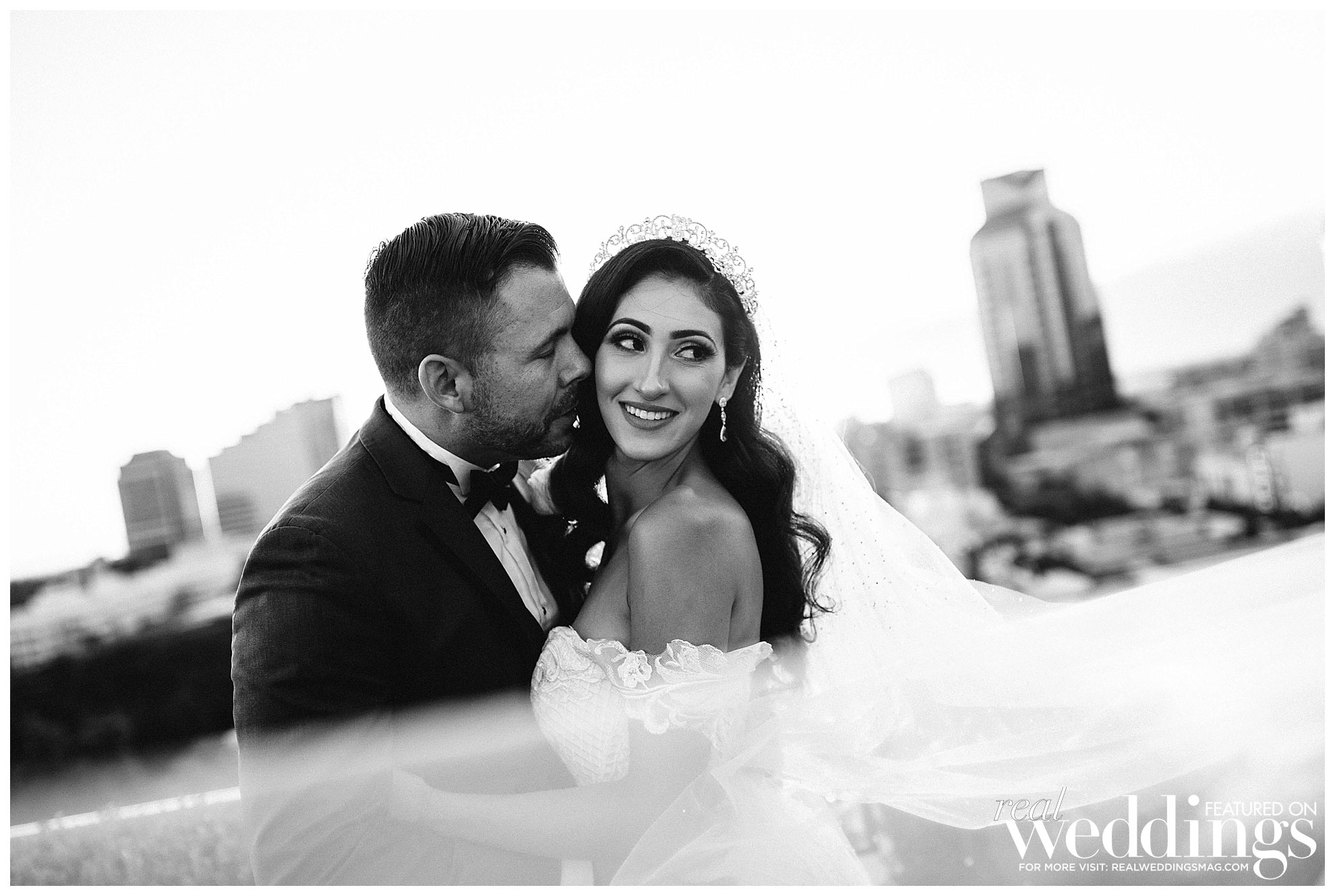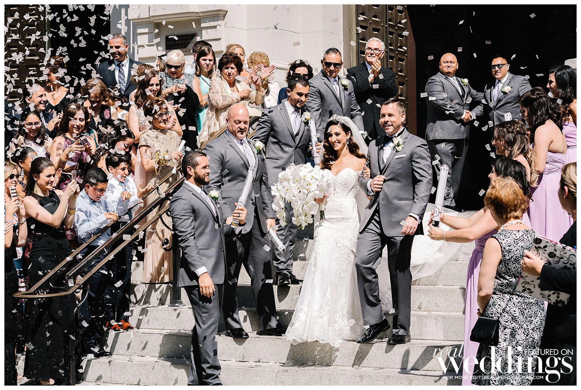 Throughout the day, they had several family traditions. During the ceremony, their mothers lit two candles next to the unity candle at the Cathedral altar, symbolizing unity as a new family. Angela’s father walked her down the aisle and the groom’s uncle did the first reading in honor of Jason’s father, who died several years ago. “Fusing our cultures together made for an entertaining wedding reception,” says Angela who’s Palestinian and Armenian; Jason is Italian.