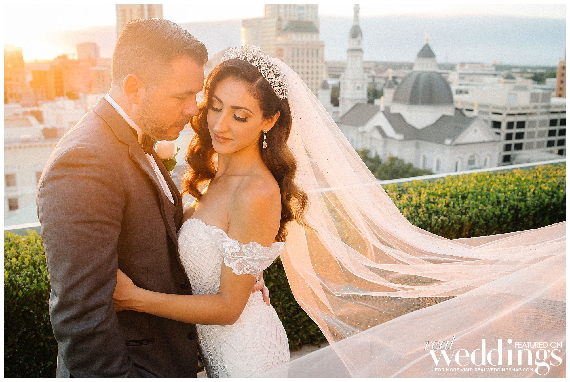 Angela and Jason had a fairytale engagement followed by a a fairytale wedding. The two met in 2016 when Angela was working on a story as a reporter for CBS 13. They dated for a year and got engaged during a romantic getaway to Punta Cana in the Dominican Republic. Jason had booked a photo shoot to celebrate their one-year anniversary. They shot in multiple locations, including their last stop at the beach. “Once we walked onto a pier over the water, Jason got down on one knee and asked me to be his wife,” says Angela. “It was a fairytale proposal I will never forget!”