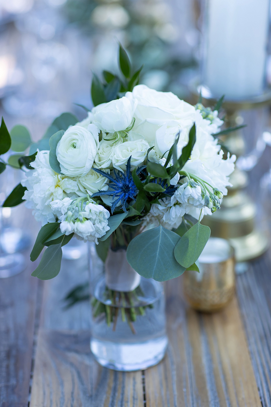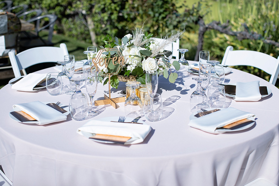 Bride: My wedding dress and the table decor at the reception.
