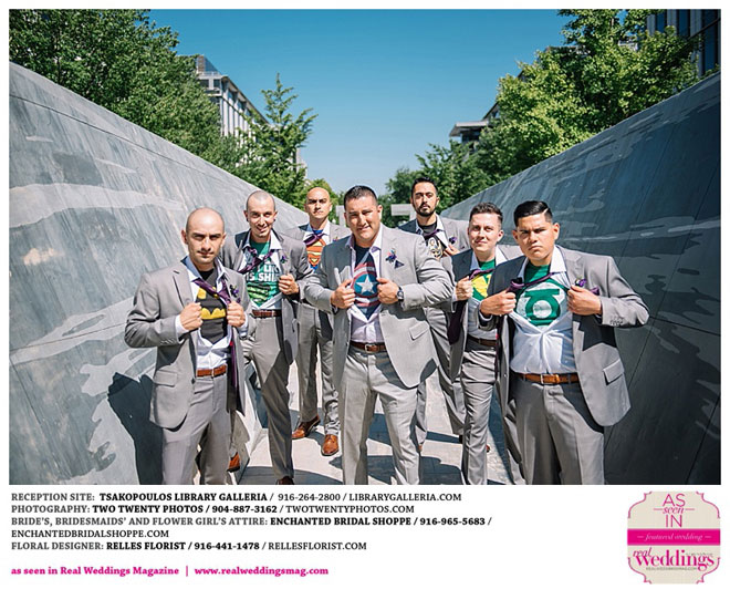 After the ceremony, the couple shot wedding photos in downtown Sacramento, having lots of fun, especially with those comic book poses from the guys!