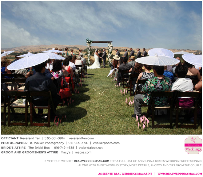 The couple shared a “first look” and both agree that it was one of their best wedding decisions, as they relished having time together before the rush of the day. The wedding party then joined them for group photos and some time to be silly. The ceremony took place on the hilltop at Taber Ranch, providing vast views in an intimate setting, which was exactly what they wanted.