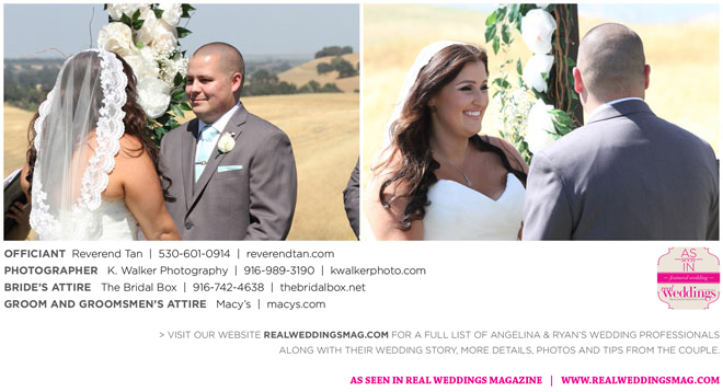 After a long courtship, Angelina admits she began to get antsy waiting for the proposal. During a day of shopping at the mall, Angelina ventured into a jewelry store with Ryan’s mom and sister-in-law. After she found the perfect ring, Ryan’s mom called him into the store and sent Angelina away. When they later met up at a bookstore, Ryan, who can’t keep a secret, leaned over to Angelina and said, “I bought it.” It may not have been the romantic proposal Angelina was waiting for, but to her it was perfect.