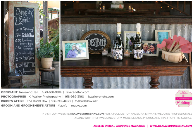 While working toward their goals, they took time to plan the wedding—more than two years—and were able to really enjoy the experience without feeling rushed or frantic. The only truly stressful part of the planning was when Angelina discovered she wasn’t quite as crafty as she had hoped for, making all of her DIY décor a bit more difficult than she’d bargained for.