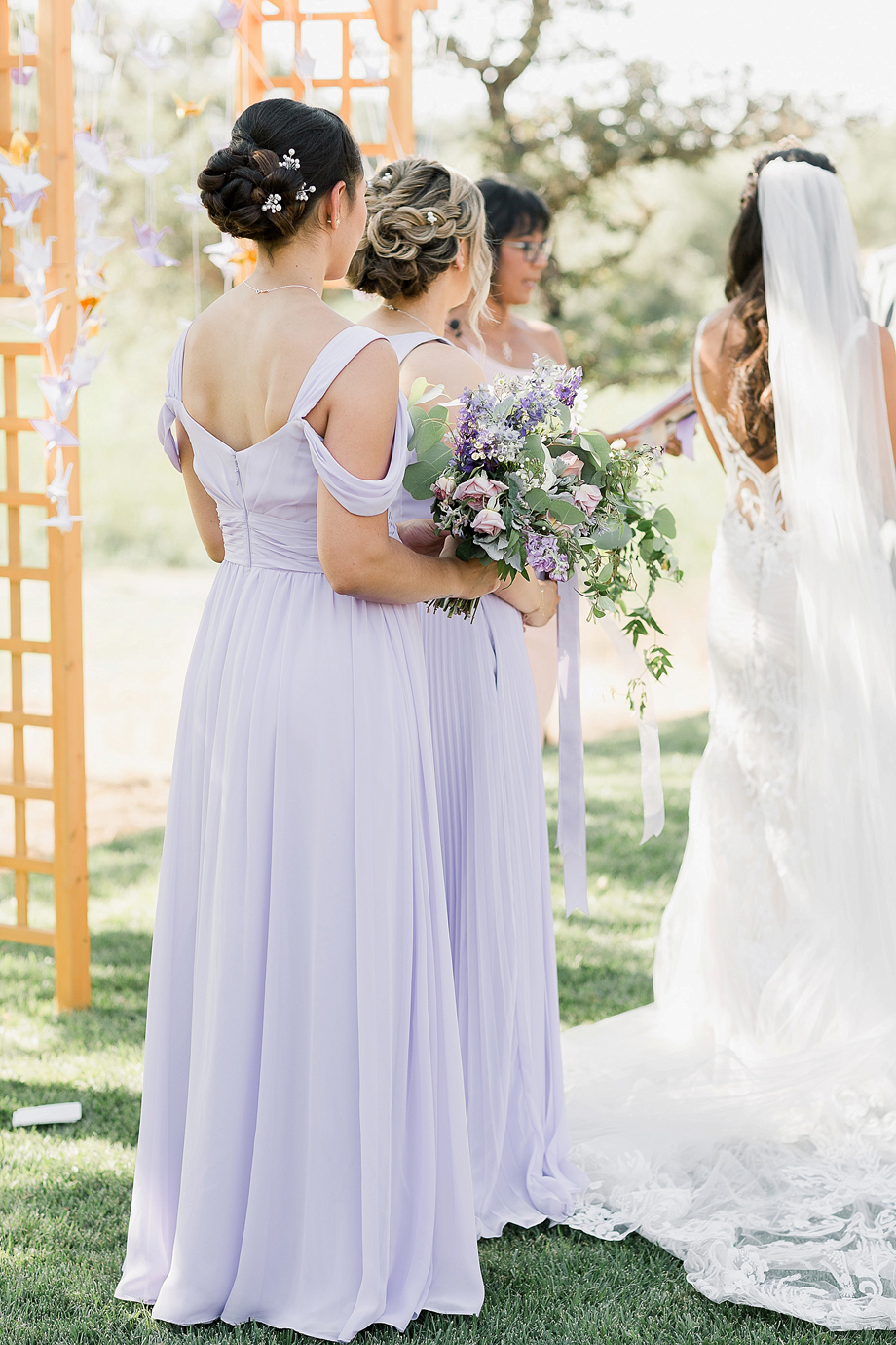 The ceremony was amazing! Ally and her parents were dropped off at the ceremony site by a Cinderella Carriage and then after the ceremony, we were whisked away to the vineyard in the same Cinderella Carriage. Also, Ally is part Japanese and origami cranes are a tradition in that culture, so we had origami cranes hanging from the ceremony arch as well as the arch over the head table at the reception site.