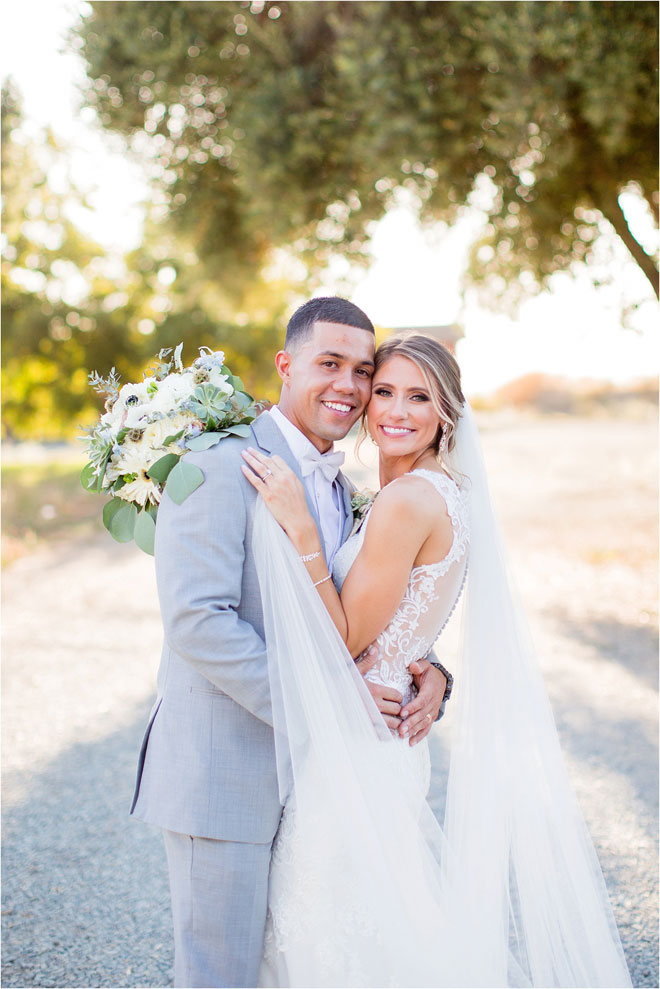 For DJ a memory that sticks out is when they had just been introduced as Mr. and Mrs. for the first time, and they sat down at their sweetheart table at the reception. “It was a surreal feeling looking around at all our loved ones and knowing everyone was there to celebrate us,” he says. Anne fondly recalls having all of their favorite people together to celebrate, but also says that a favorite moment of hers is when she and DJ were riding to the venue together in the limo—just the two of them, having a quiet moment to toast their love.