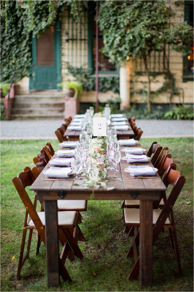 DJ’s must-have list for the big day was pretty straightforward. “The only things I felt I needed to have are the people I felt were most important to me, and for my beautiful bride to have a good time and the wedding of her dreams,” he says. For Anne, that meant keeping the event local, so that her 98-year-old grandmother could be there. She also wanted to have the reception outside on a warm summer evening for dancing under the stars.