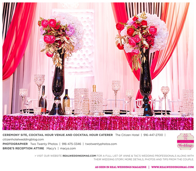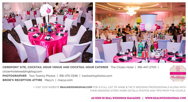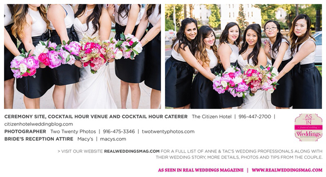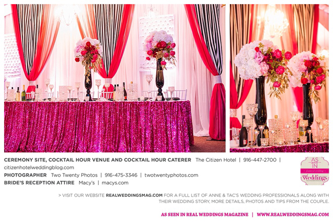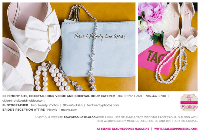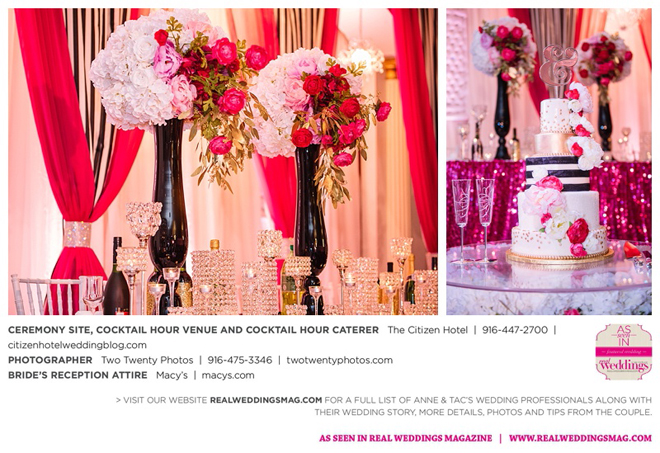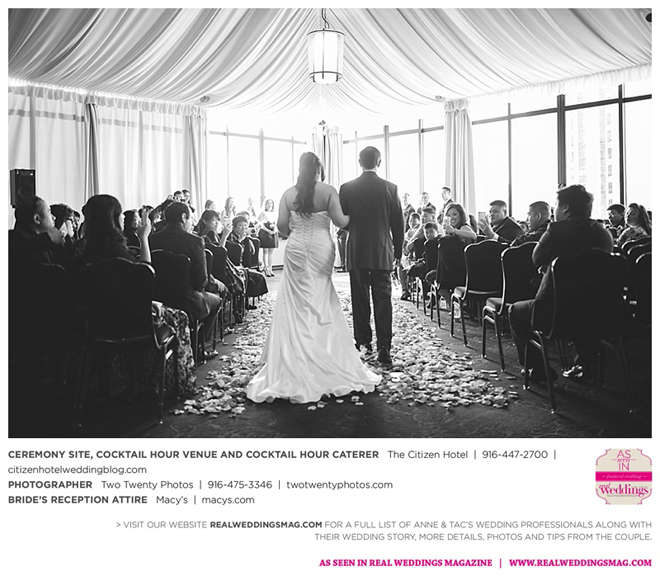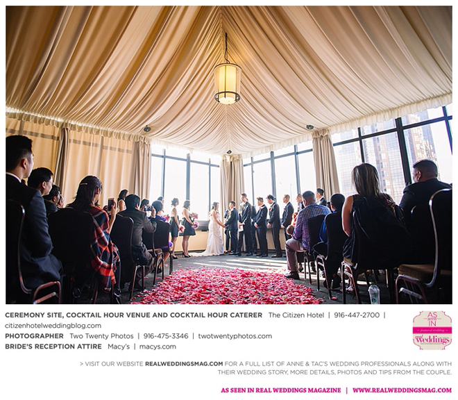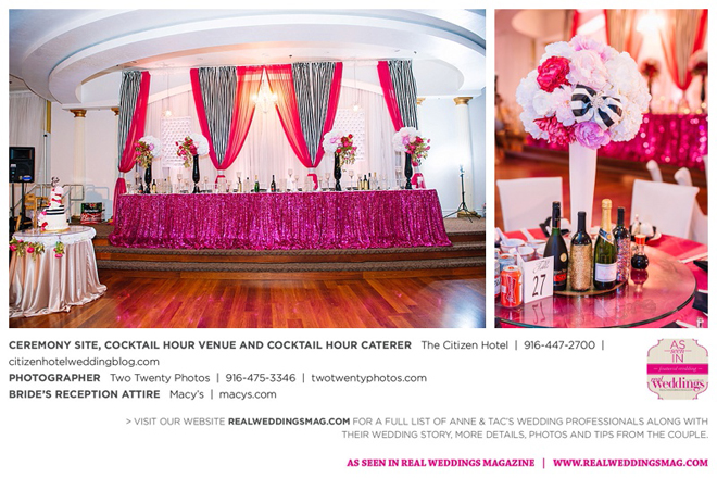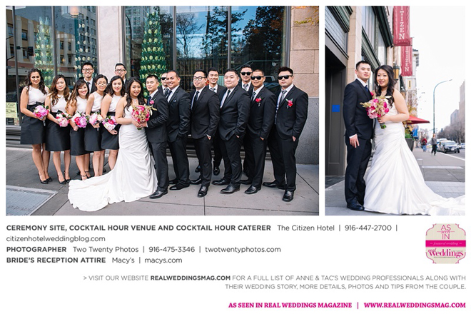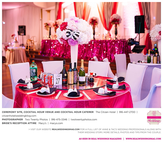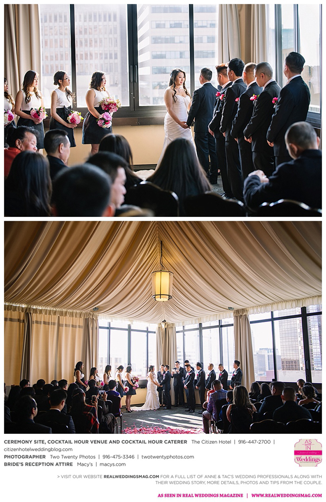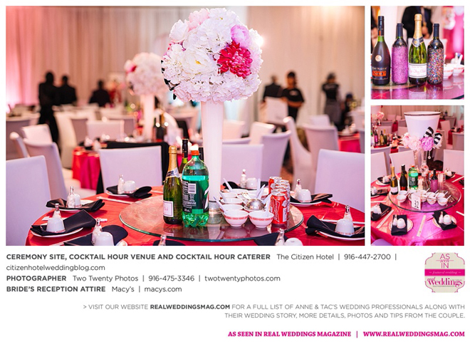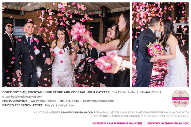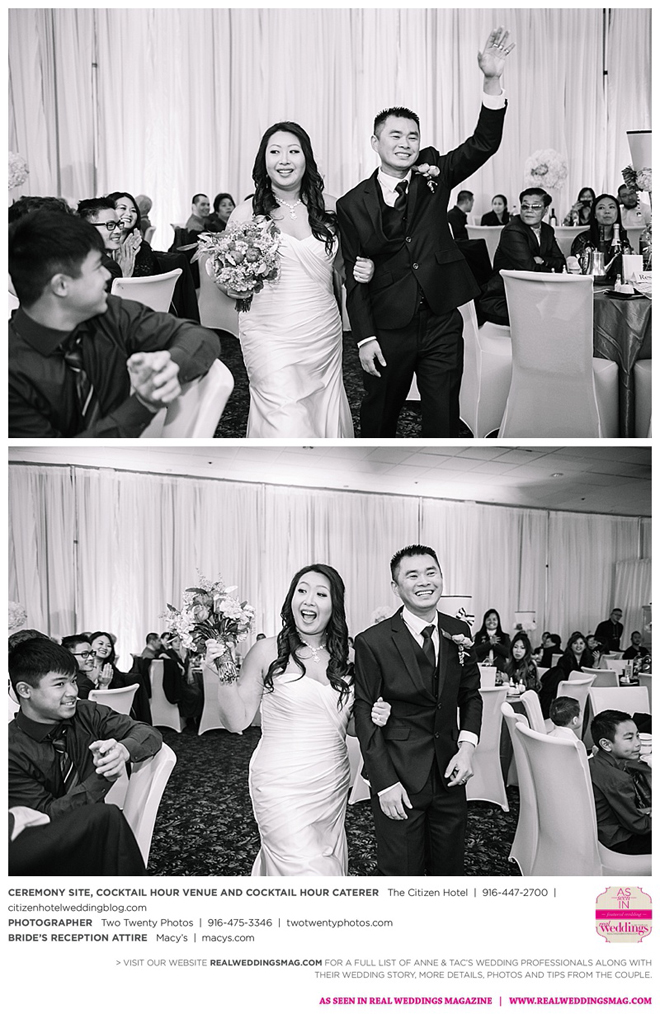 Early in the morning of the wedding day, the couple had the traditional Chinese tea ceremony with family. “I offered tea to all the elders in the family I was entering,” says Anne. “In addition to a tea offering, there were cakes, cookies and other sweets laid out so Tac and I could offer different foods to the different aunts and uncles. In return, they gifted us with different pieces of jewelry and monetary gifts to wish us luck in our marriage.”