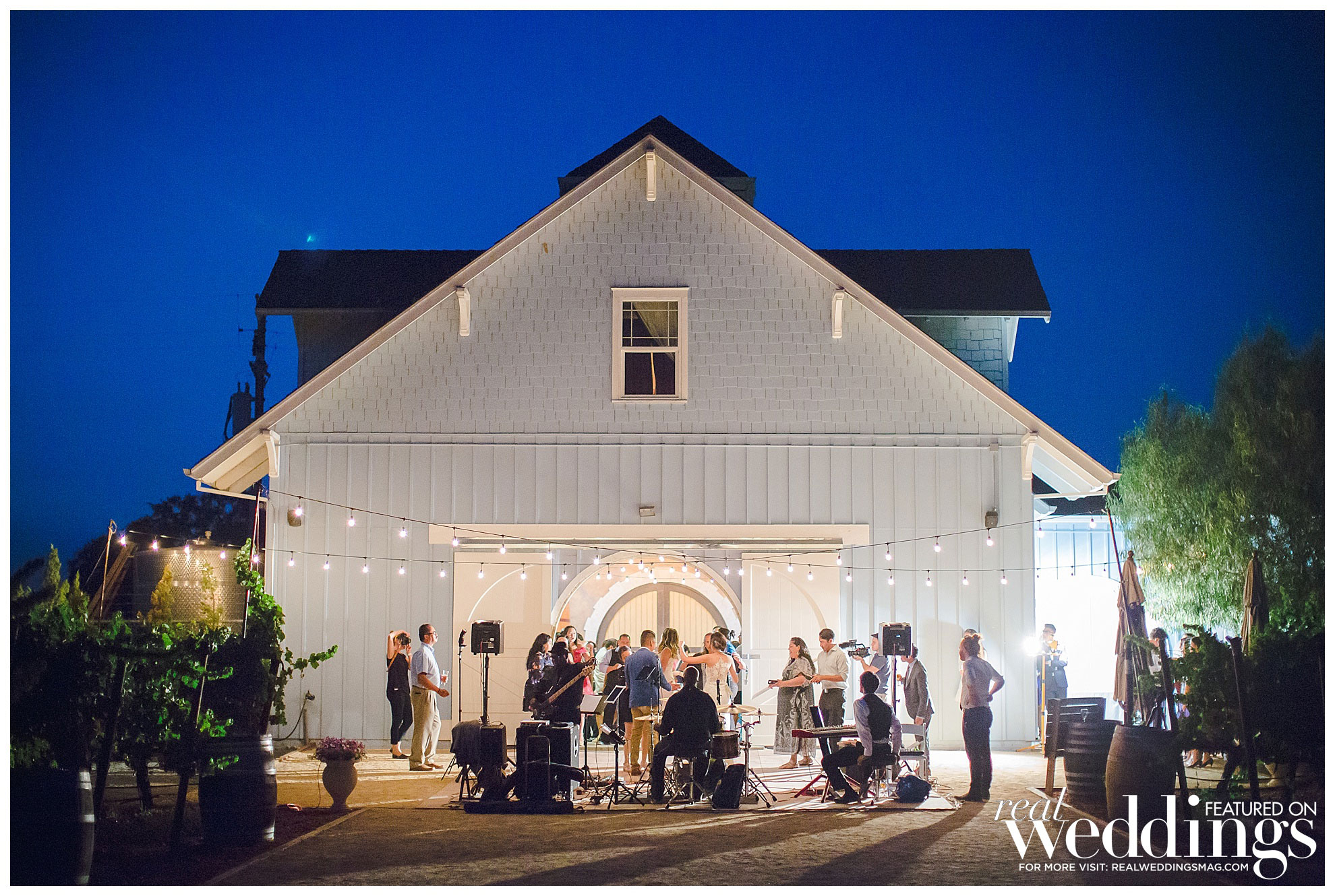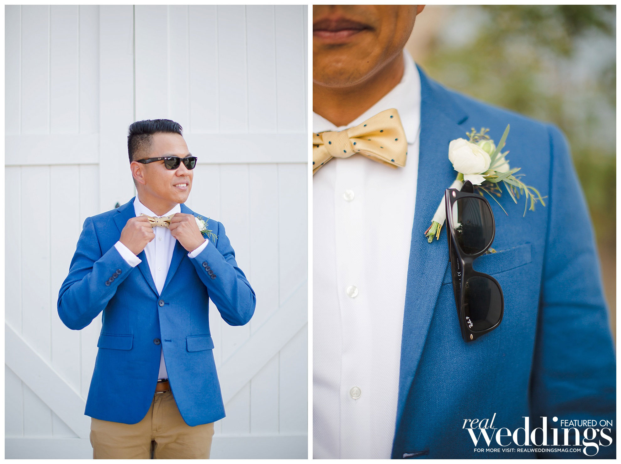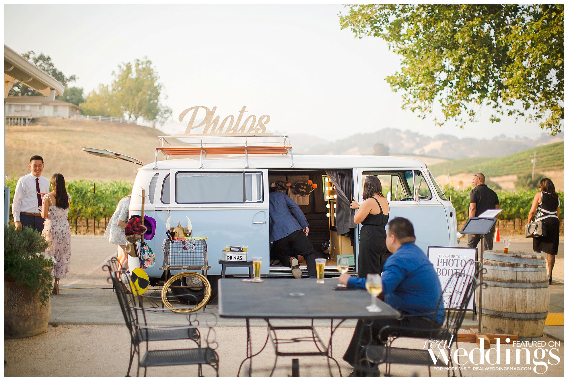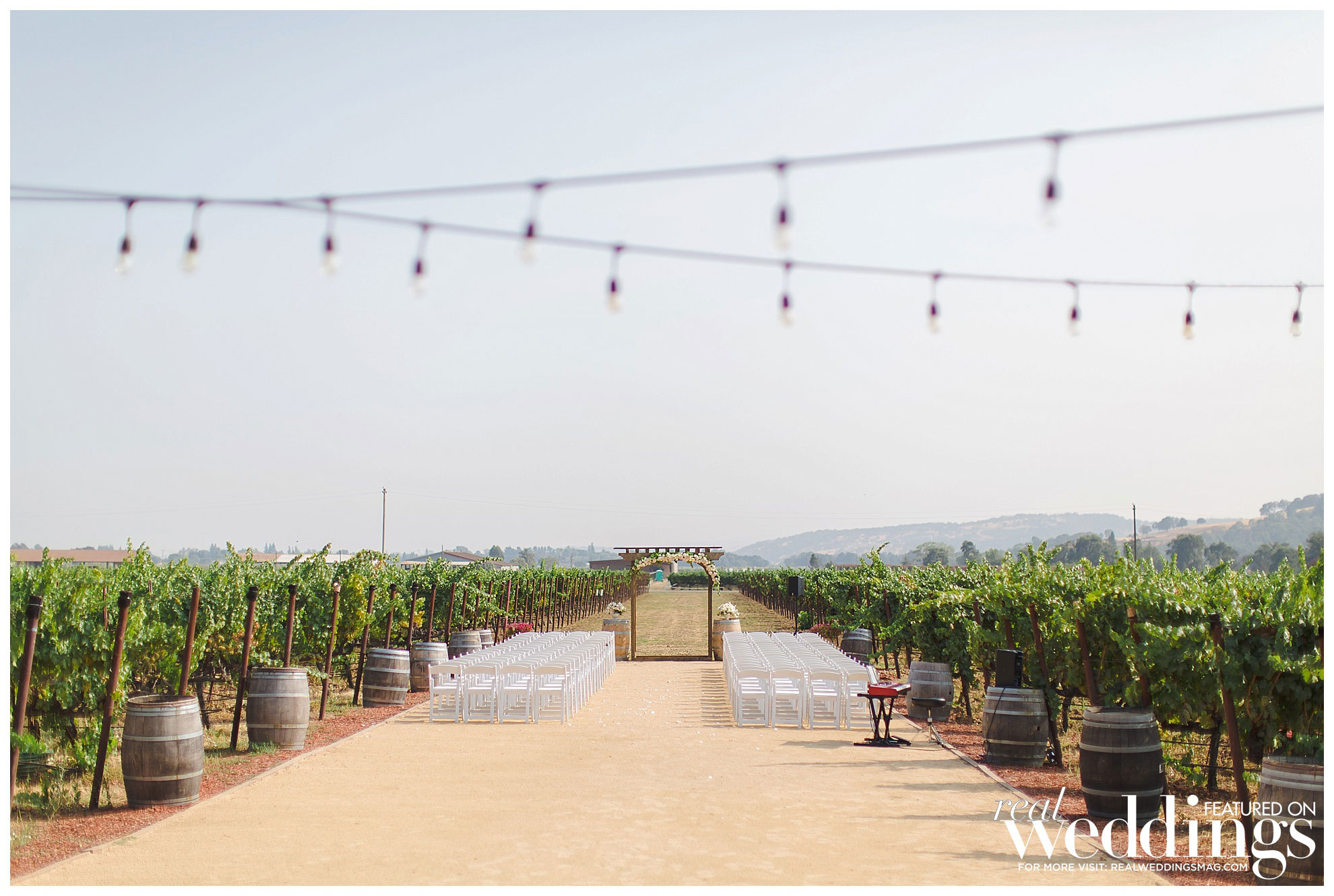 The reception was also held at the vineyard. The couple, both engineers, chose a light color scheme of white and gold, with bits of blush to complement the barrel room’s light blue shade on the outside as well as the lush greenery in the backdrop. They had a traditional Filipino money dance during the reception.