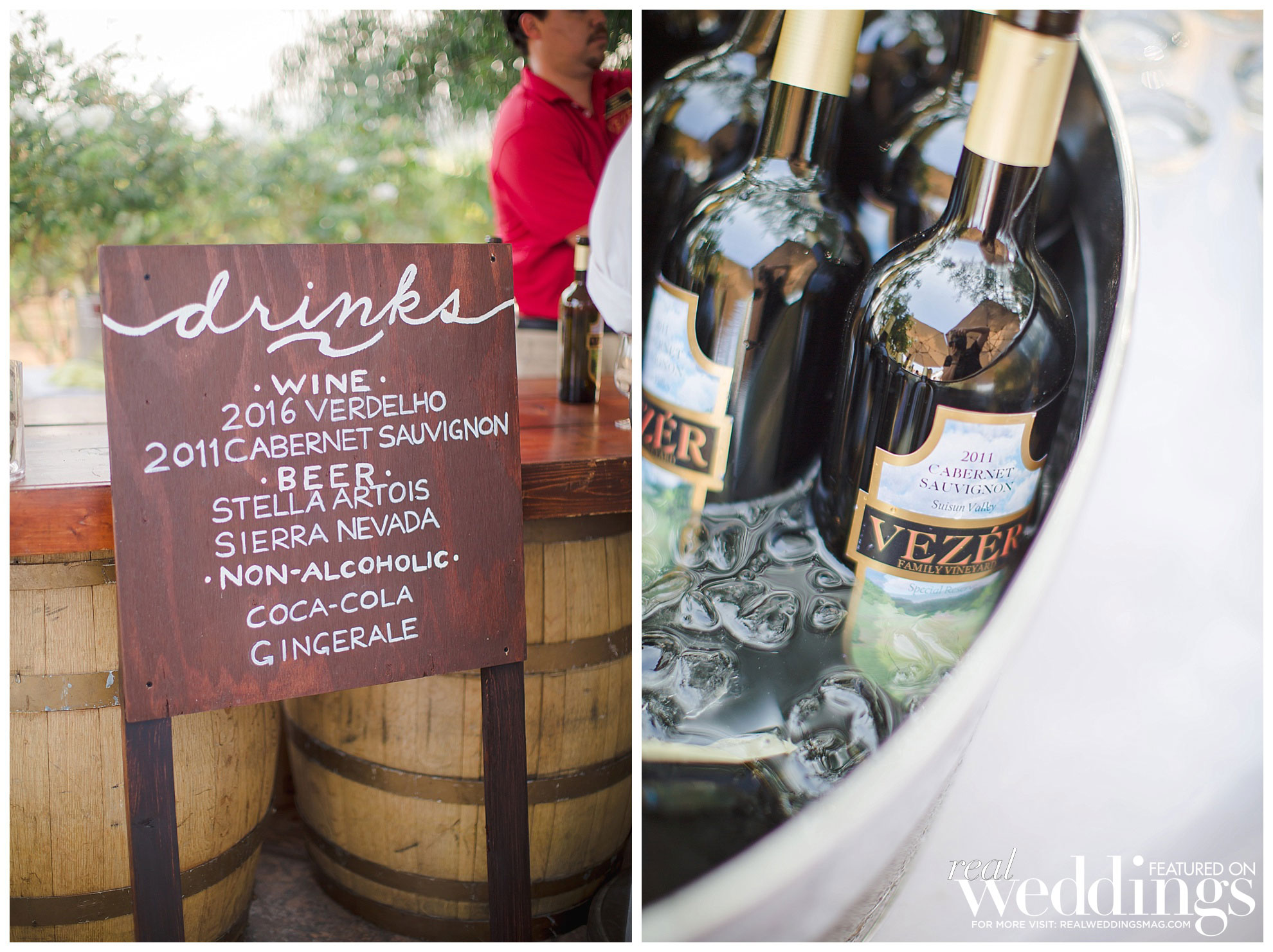 Their ceremony at Vezer Family Vineyard was simple and personalized. They exchanged vows outdoors in the vineyard, where a pianist and guitarist played. Dex’s best friend officiated the wedding, and the bride and groom wrote their own vows. Dex’s favorite memory was seeing his bride when she appeared from behind the barn doors to walk down the aisle. April loved when Dex read his vows. The couple did not have a wedding party and wanted a “short and sweet” ceremony since the day was going to be very hot and they didn’t want their 140 guests to stay under the sun for too long.