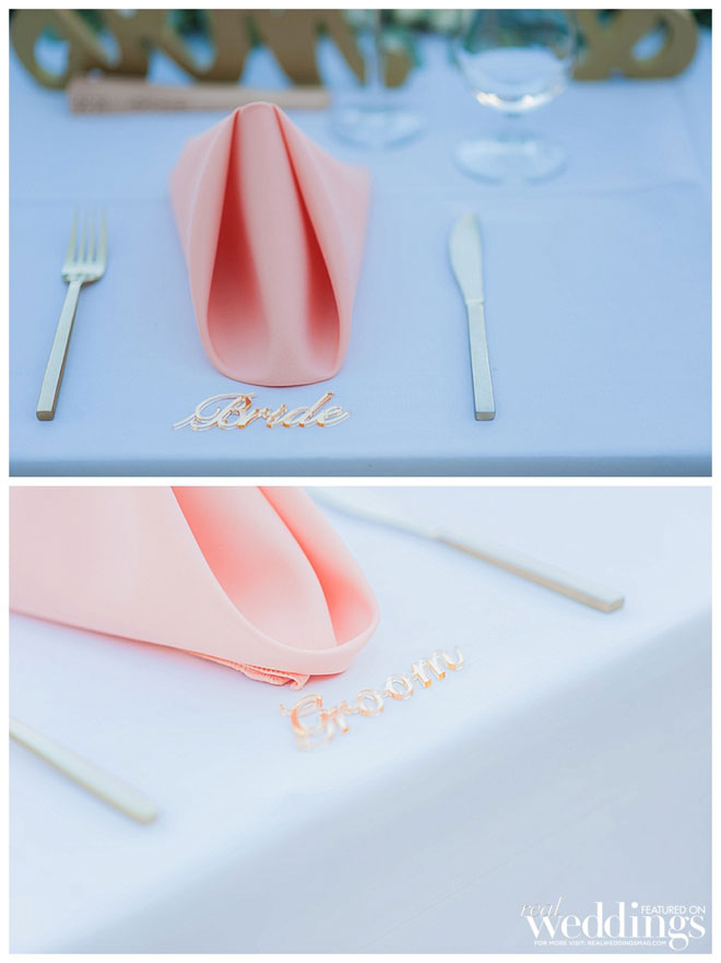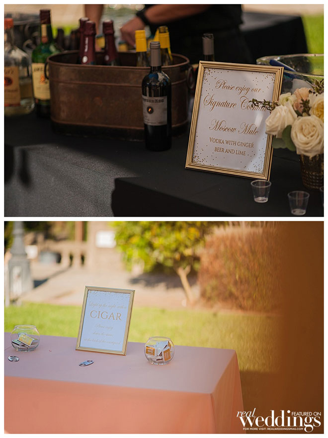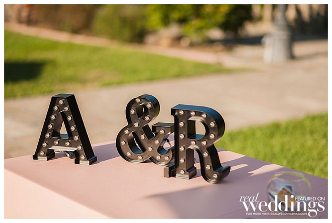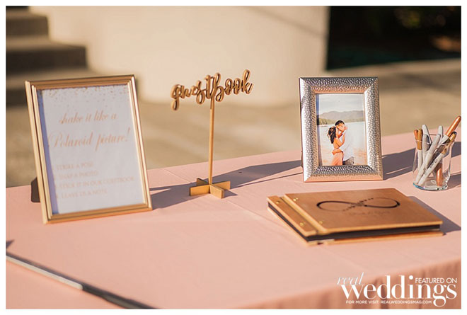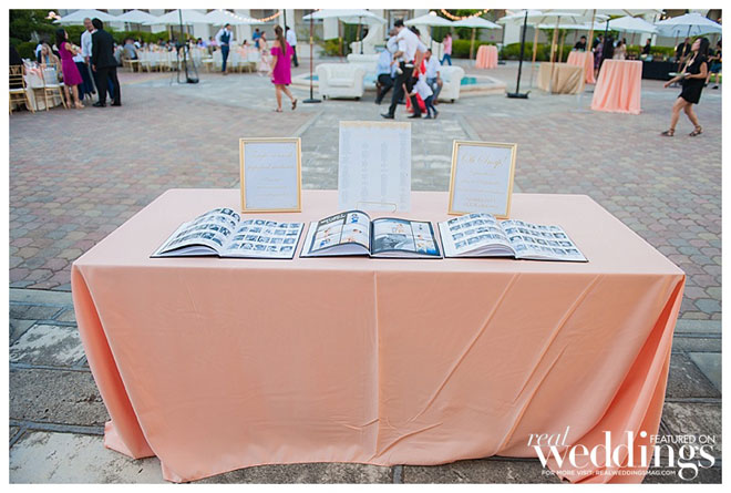 “We had a couple of themes to give the reception a personal touch,” shares April. “Because we met in high school, instead of a seating chart we had a wedding yearbook. The back of the yearbook included a photo image of the actual message Rich wrote in my yearbook senior year, with pages for the guests to write their own messages.It was fun to see our guests looking through the yearbooks and finding old photos of themselves and all our friends and family.”